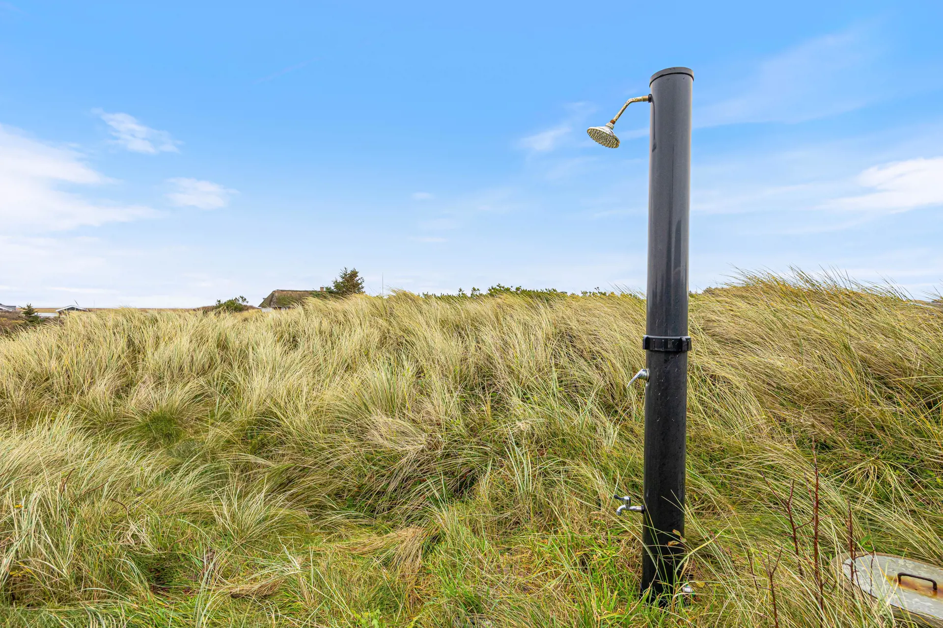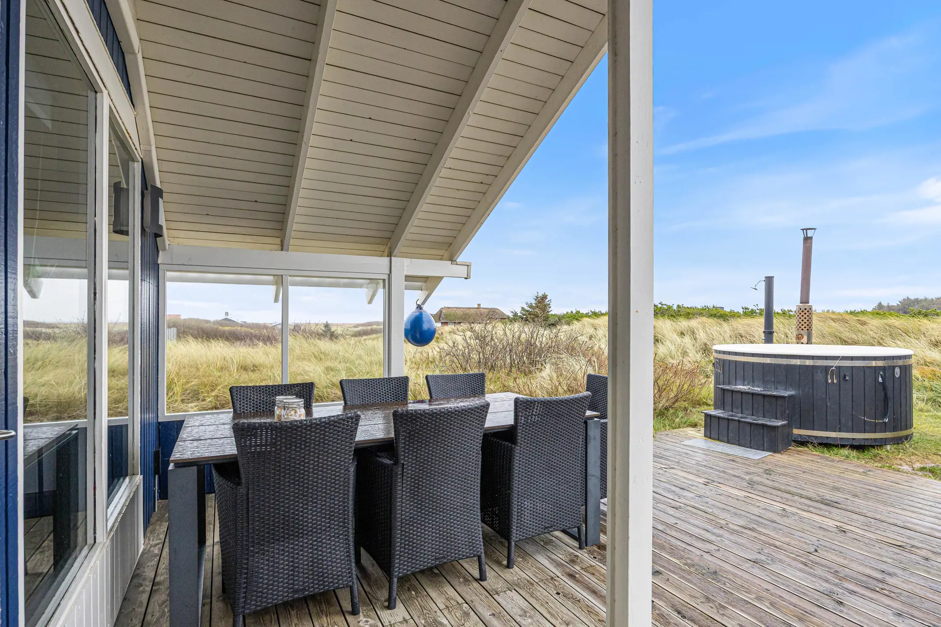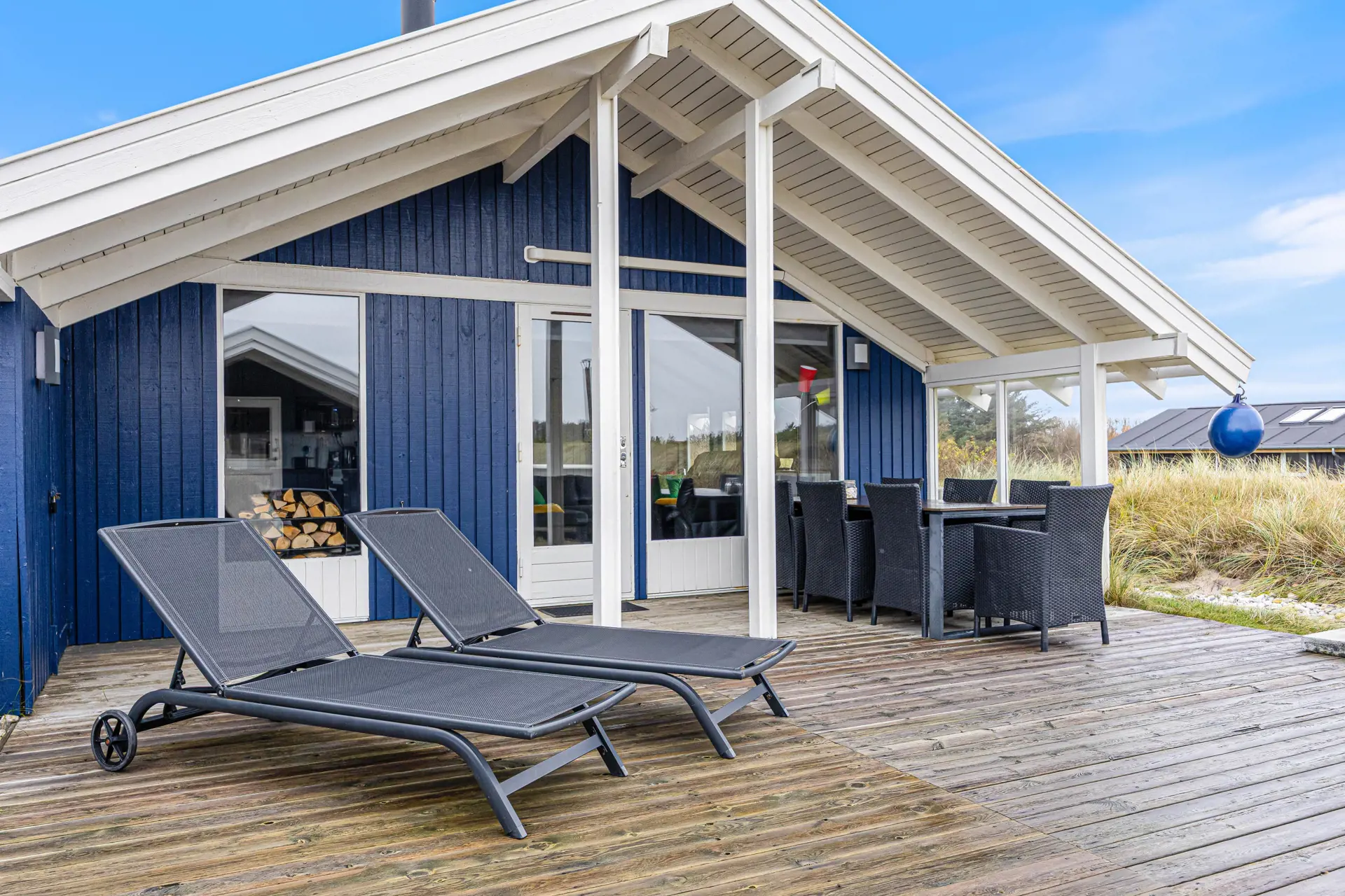 Nicht nur das Innere des Ferienhauses in Årgab, auch die Außenanlagen laden zu Stunden der Entspannung ein. Das Ferienhaus liegt eingebettet auf einem idyllischen Natur- und Dünengrundstück. Lass die Seele baumeln auf der offenen Terrasse oder genieße die lauen Sommerabende auf der überdachten Terrasse mit bequemen Gartenmöbeln.