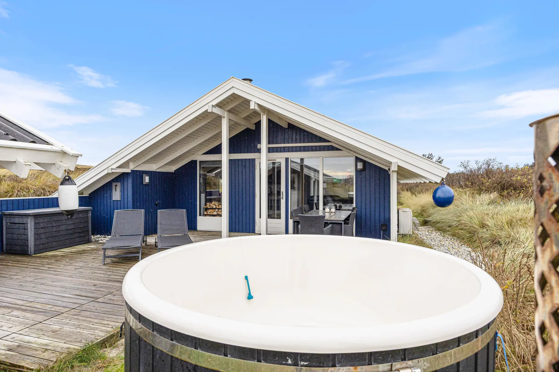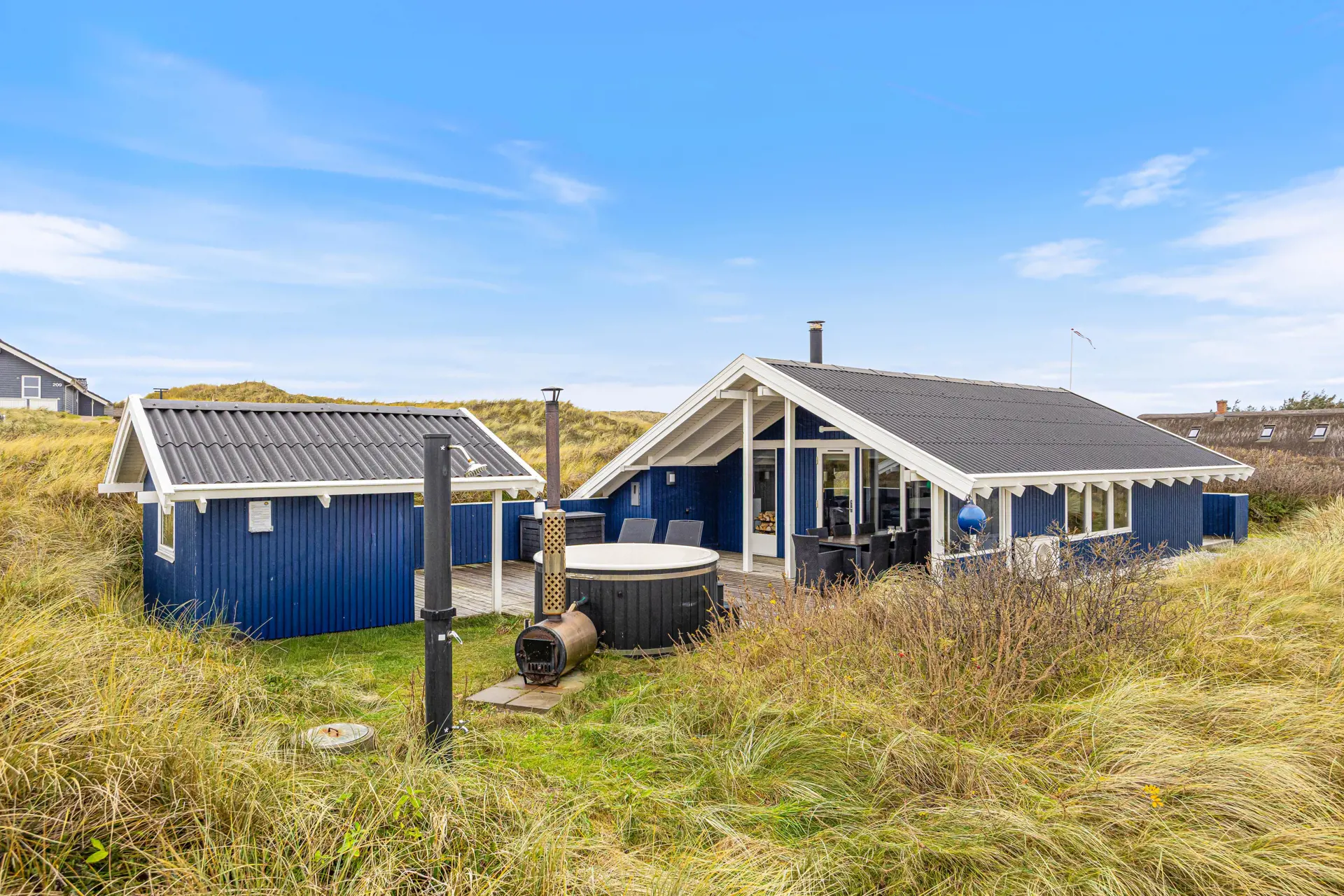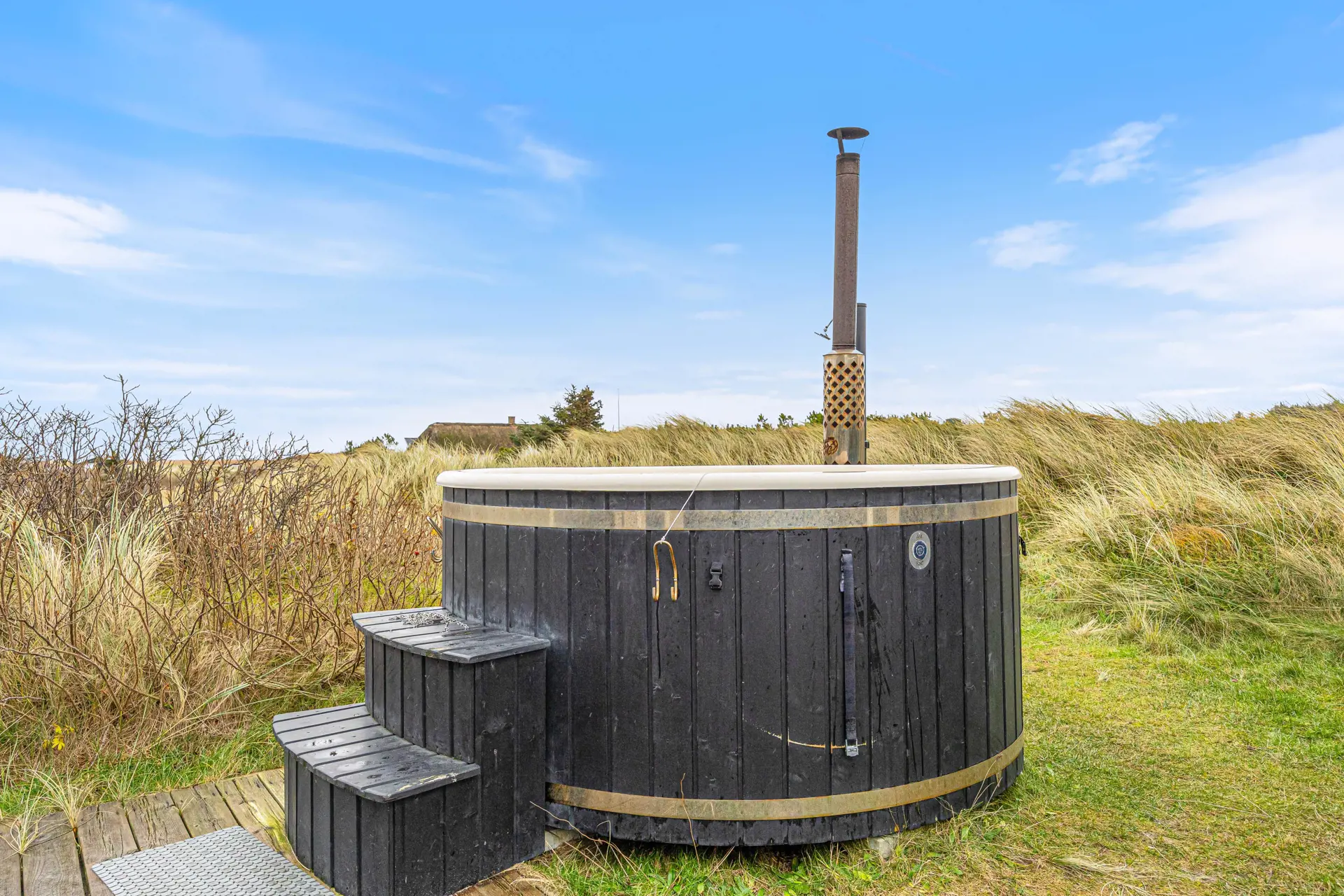 Nicht nur das Innere des Ferienhauses in Årgab, auch die Außenanlagen laden zu Stunden der Entspannung ein. Das Ferienhaus liegt eingebettet auf einem idyllischen Natur- und Dünengrundstück. Lass die Seele baumeln auf der offenen Terrasse oder genieße die lauen Sommerabende auf der überdachten Terrasse mit bequemen Gartenmöbeln.