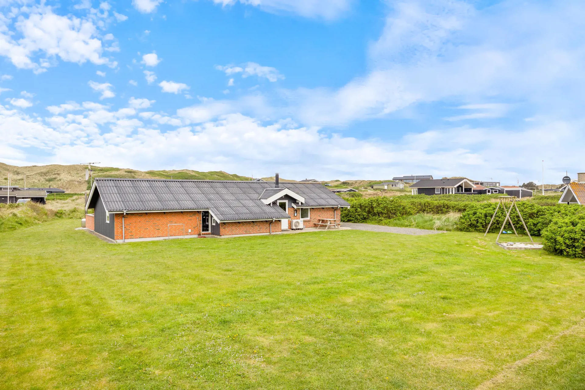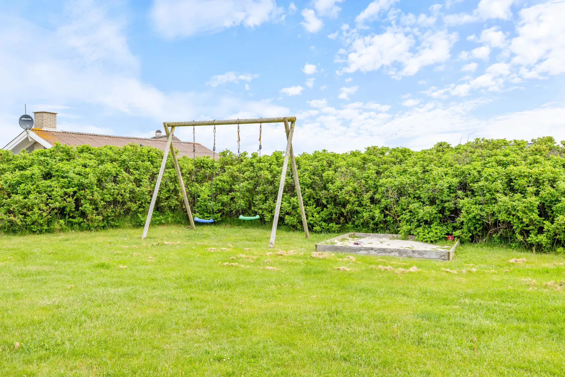Das Ferienhaus verfügt über eine gute, eingezäunte Terrasse, von der ein Teil überdacht ist. Daher kann die Terrasse fast das ganze Jahr über genutzt werden, auch da diese gut abgeschirmt ist und so Schutz vor dem Wind bietet. Tagsüber könnt ihr die fantastische Aussicht auf die Dünen genießen, die sich im Hintergrund erstrecken und während ihr euch abends zum gemeinsamen Grillen versammelt, könnt ihr zum Rauschen des Meeres die Seele baumeln lassen. Macht Ihr den Grill an, während die Kinder auf dem großen Rasengrundstück mit Schaukel und Sandkasten spielen.