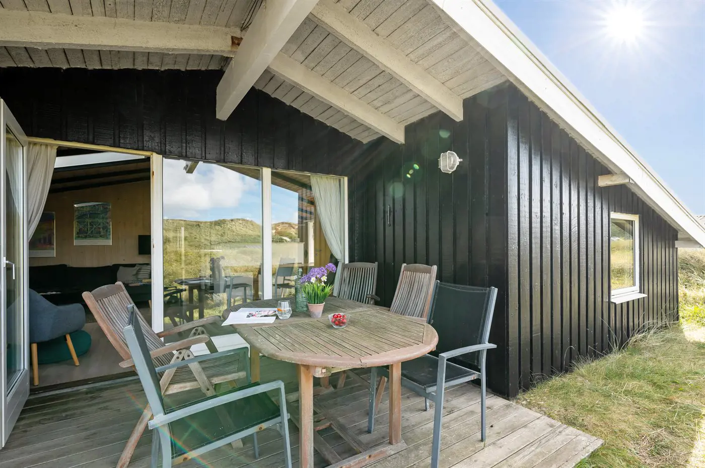 Ein gemütlich eingerichtetes Ferienhaus mit einer schönen Lage – nur 150 m von den Dünen und der Nordsee entfernt. Zum Haus gehören sowohl offene als auch überdachte Terrassen. Das Haus liegt nur wenige Kilometer von dem Handelsstädtchen Hvide Sande entfernt. Aufgrund seiner Natur, den vielen Sehenswürdigkeiten und Aktivitätsmöglichkeiten ist Hvide Sande ein attraktives Ferienziel für die ganze Familie.
