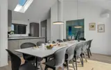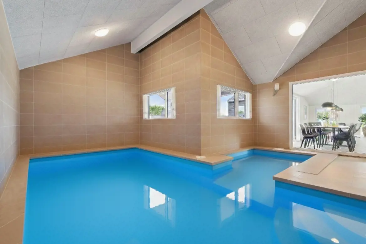 Dieses einladende Poolferienhaus bei Hvide Sande liegt nur 300 Meter vom breiten Sandstrand der Nordsee entfernt und ist ideal für gemeinsame Ferien mit Familie oder Freunden. Das Haus bietet Platz für bis zu 14 Personen mit fünf Schlafzimmern sowie Schlafplätzen auf dem Dachboden, zwei Badezimmern und einem großen, offenen Wohnbereich mit Kamin, Küche und Essplatz. Der Poolbereich mit Schwimmbecken und Kinderpool kann das ganze Jahr über genutzt werden. Für Unterhaltung sorgt der Aktivitätsraum mit Billard, Tischtennis und Darts. Im Außenbereich laden Terrasse, Grill, Lounge sowie ein Wellnessbereich mit Außenwhirlpool und Sauna zum Entspannen ein. Ein komfortables Ferienhaus, das Natur, Erholung und gemeinsames Beisammensein an der dänischen Westküste vereint.