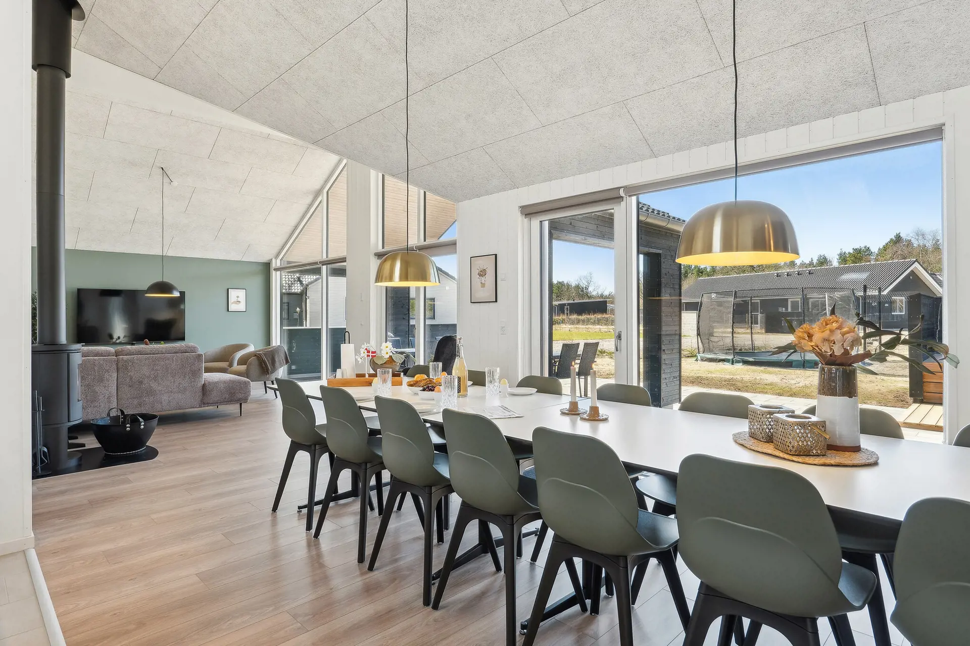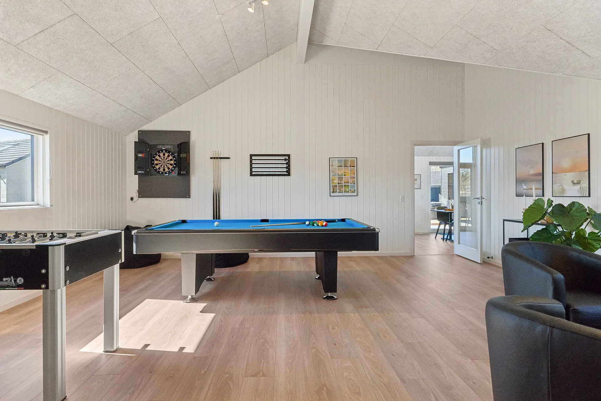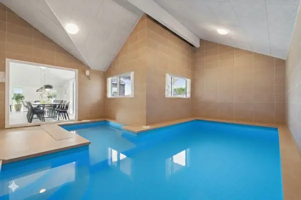 Dieses einladende Sammenhus™ bei Hvide Sande ist ideal für gemeinsame Urlaube mit Platz für Aktivitäten und Entspannung. Das Ferienhaus bietet Platz für bis zu 14 Personen in 5 Schlafzimmern sowie 4 Schlafplätze auf dem Hems und verfügt über 2 Badezimmer. Mittelpunkt des Hauses ist der helle Poolbereich mit Salzwasserpool und kinderfreundlichem Flachwasserbereich, der ganzjährig genutzt werden kann. Der Aktivitätsraum lädt mit Billard, Tischtennis und Dart zu geselligen Stunden ein. Küche und Wohnbereich sind offen gestaltet und sorgen mit Kamin für gemütliche Ferienatmosphäre. Draußen erwarten Sie Terrasse, Grill, Lounge, Outdoor-Spa und Sauna sowie ein Garten mit Trampolin und Schaukeln. Nur ca. 400 Meter von der Nordsee entfernt.