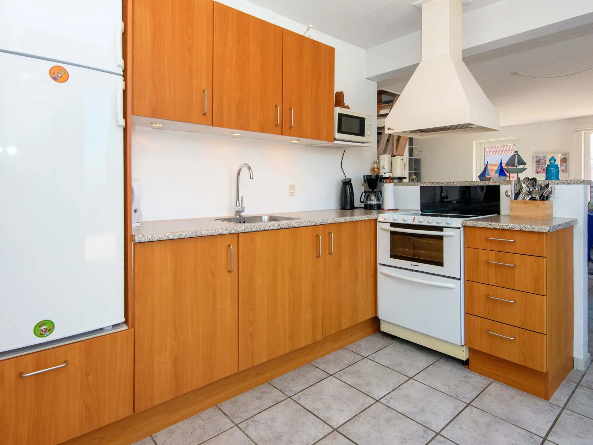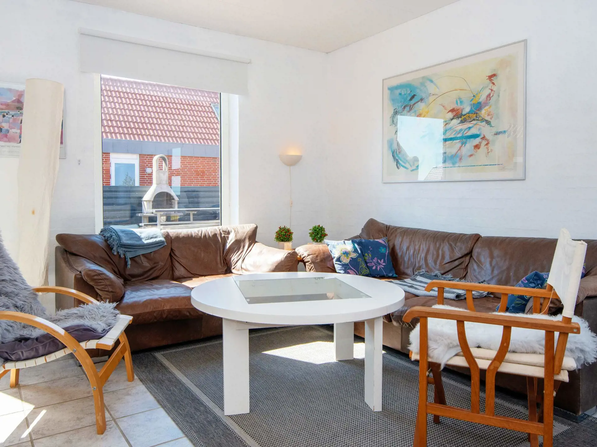 Im schönen Bjerregård, nur ca. 600 m von der Nordsee entfernt, befindet sich dieses helle Reihenhaus mit Whirlpool und Sauna zur Erholung. Das Haus ist modern und bietet viel Platz in der gut ausgestatteten Küche, die offen mit dem Wohnzimmer verbunden ist, in dem ein Fernseher bereitstehen. Es gibt zwei Schlafzimmer mit Doppelbett und vom Wohnzimmer aus Zugang zu einem geräumigen Hems mit zwei Einzelbetten. Das Badezimmer ist hell und Sie können die Sauna nutzen oder sich in der Whirlwanne entspannen. Das Haus hat eine eigene, abgeschirmte Terrassenfläche sowie Zugang zu einem großen, gemeinsamen Innenhof mit Grill.
