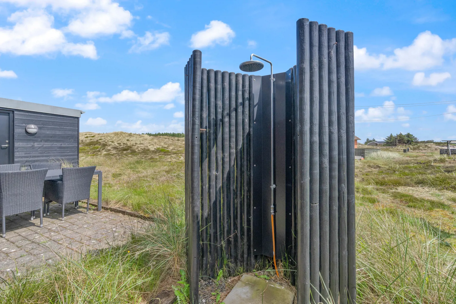 Das größte der Bäder ist zudem mit einer Sauna und einem Whirlpool ausgestattet. Entspannt euch bei ausgiebigen Saunagänge oder genießt ein heißes Bad im Whirlpool. Im Sommer könnt ihr euch nach dem Saunagang unter der Außendusche erfrischen. Die Außendusche steht von April bis November zur Verfügung. In diesem modern ausgestatteten Ferienhaus kann man den Alltagsstress hinter sich lassen und die Seele baumeln lassen.