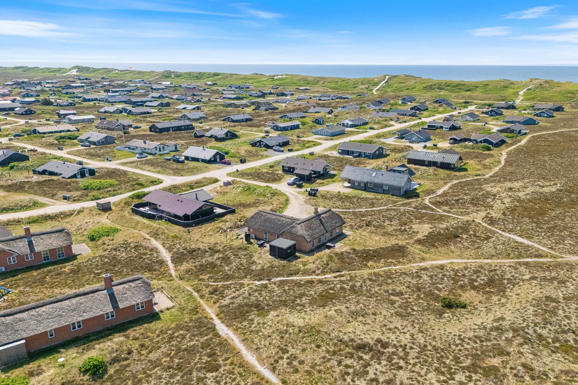 Nur 300 Meter trennen euch von der Nordsee und dem breiten Sandstrand der dänischen Westküste. Freut euch auf lange Spaziergänge, spürt den Sand zwischen euren Zehen und lasst euch die frische Meeresluft um die Nase wehen. Auch tolle Rad- und Wanderwege führen durch die Heide- und Dünenlandschaft. Mit dem Fahrrad ist auch der Kaufmann des Feriengebietes Bjerregård schnell erreicht. Hier könnt ihr euch morgens mit frischen Brötchen eindecken und auch allerlei regionale Köstlichkeiten findet ihr hier.