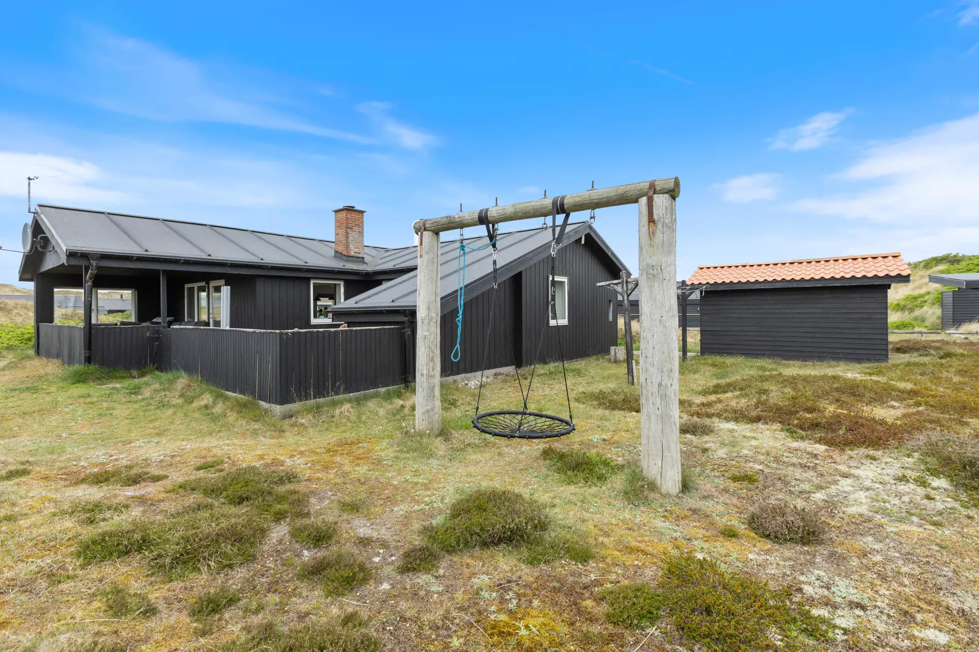 Im Bjerregårdsvej 295 liegt dieses gemütliche Ferienhaus auf einem schönen Dünengrundstück nur 250 Meter von der brausenden Nordsee der dänischen Westküste entfernt. Das hübsche Sommerhaus ist hell und freundlich eingerichtet und erstrahlt im typisch skandinavischen Einrichtungsstil. Es bietet Platz für bis zu sechs Personen, ist also ideal für eine kleine Familie geeignet. Auch Eure beiden Hunde sind hier gern gesehene Gäste.