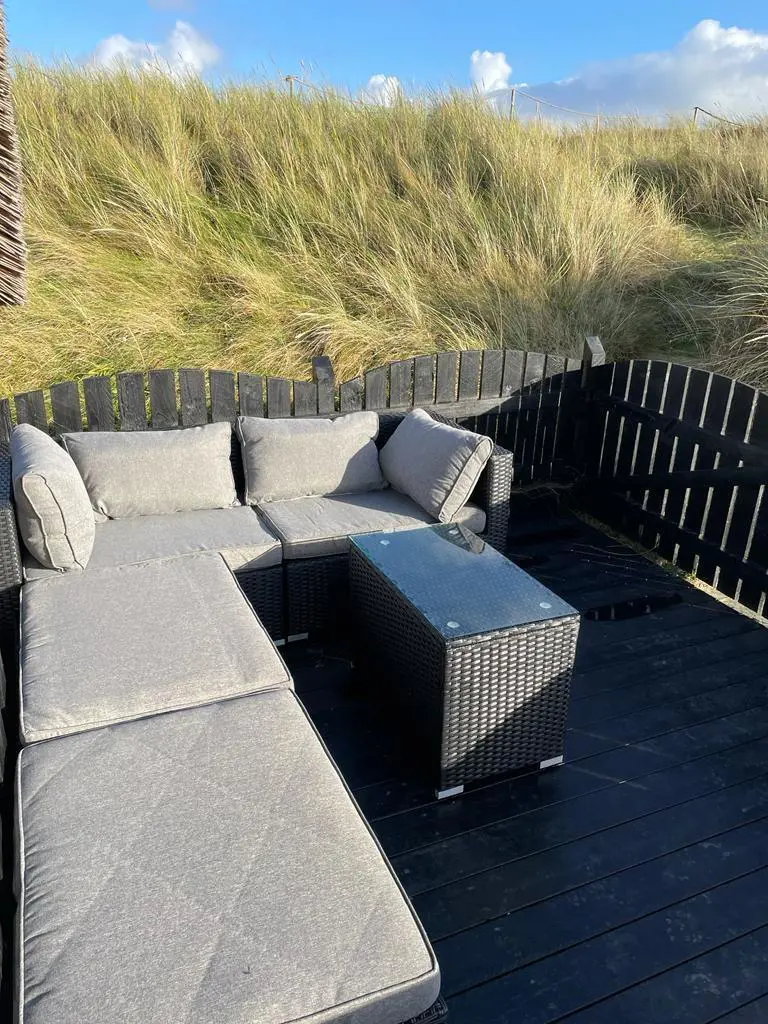 Im Außenbereich stehen euch 2 schöne Terrassen zur Verfügung. Eine komplett geschlossene Terrasse im Westen, von der aus ihr einen schönen Blick auf die Dünenlandschaft genießen und auf der ihr das Rauschen der Nordsee hören könnt.