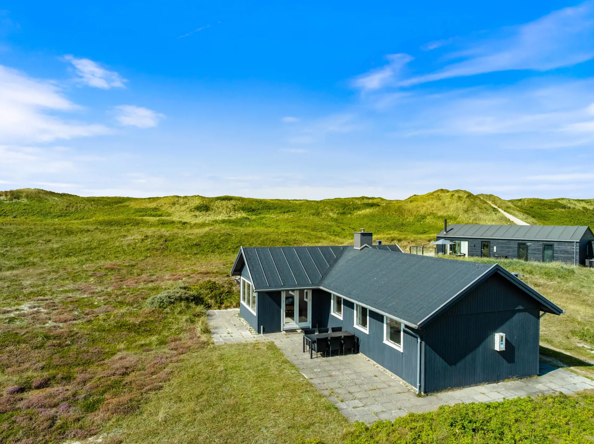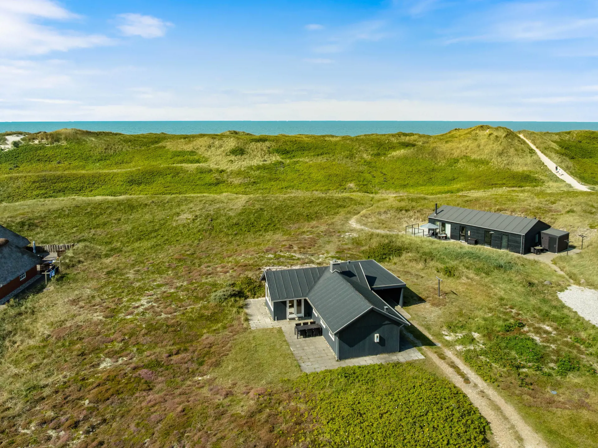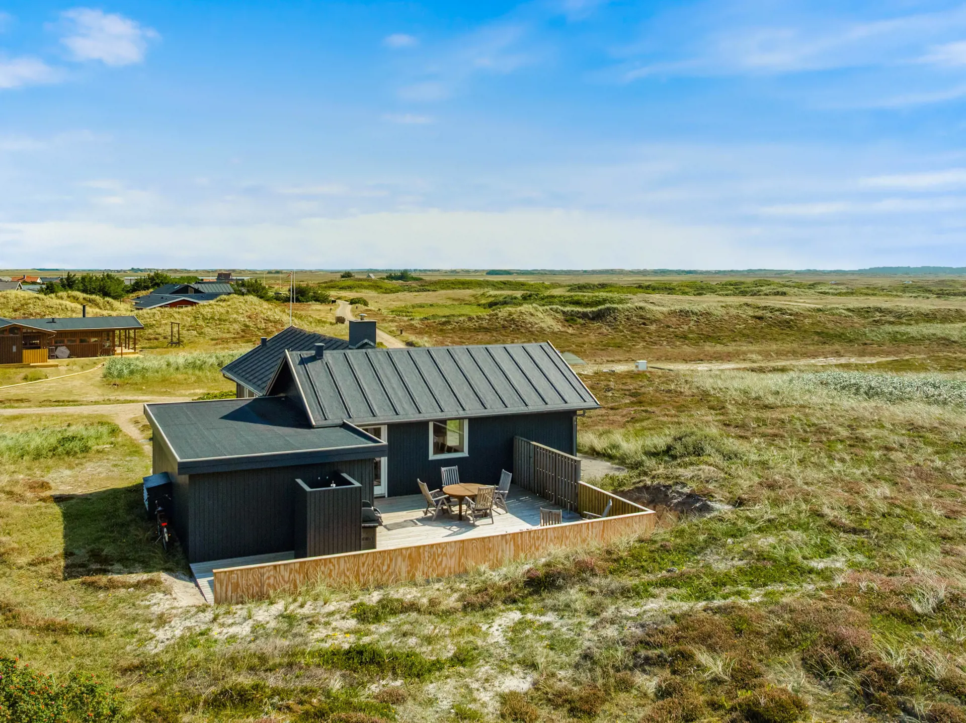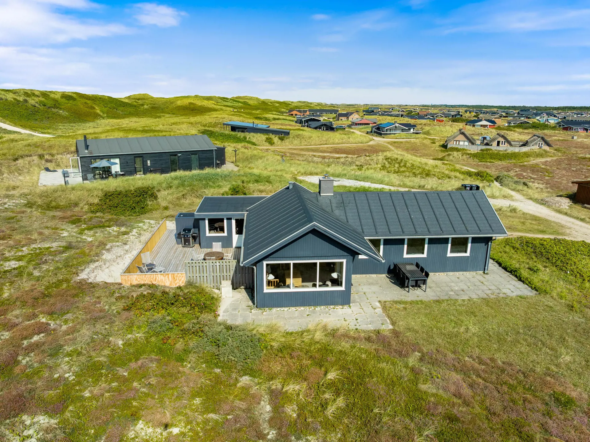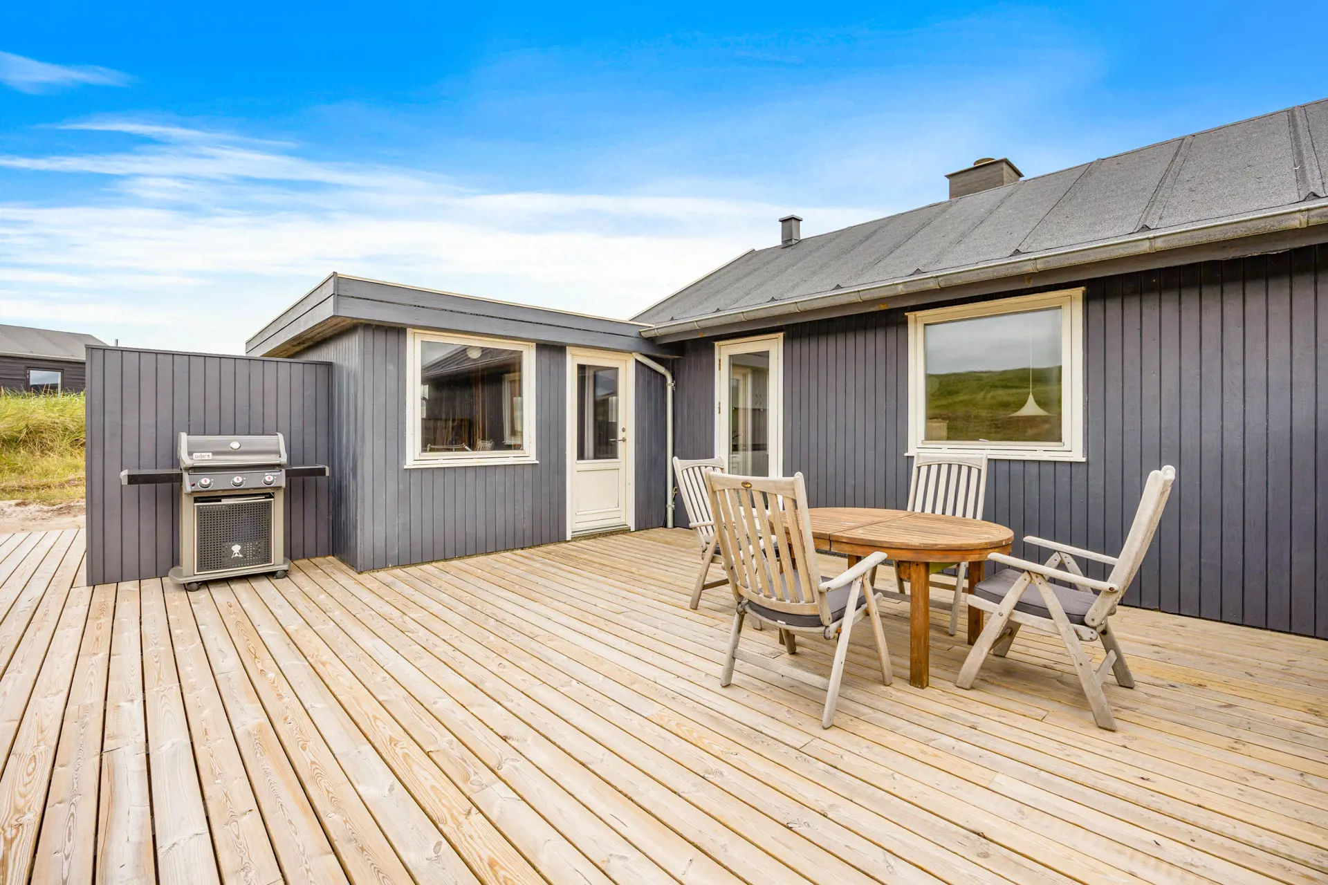 Im Außenbereich findet ihr euch auf der teils abgeschirmten Terrasse wieder, auf der ihr euch in den bequemen Gartenmöbeln entspannen könnt. Umgeben von eurem großzügigen Dünengrundstück habt ihr einen tollen Ausblick in die hier so typische Natur der dänischen Westküste. Dünen und Heide so weit man schauen kann. Ein Ort zum Wohlfühlen und um den Alltagsstress zu vergessen.