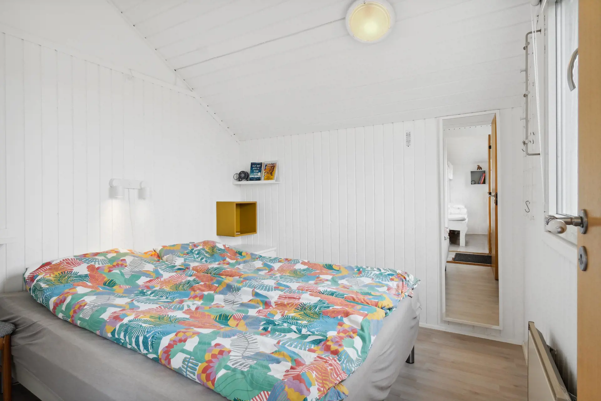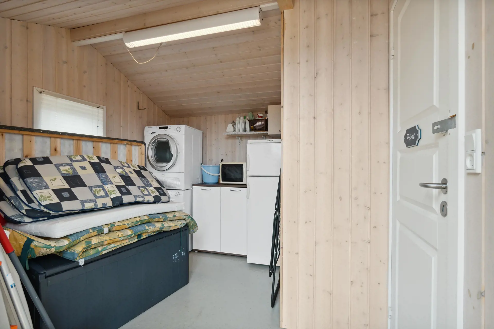 In diesem Ferienhaus gibt es eine gut durchdachte Aufteilung, denn Wohnraum und Schlafräume sind voneinander durch eine Tür getrennt. So können kleinere Kinder in Ruhe schlafen, während die Erwachsenen sich im gemütlichen Wohnraum einen schönen Abend vorm Fernseher machen.