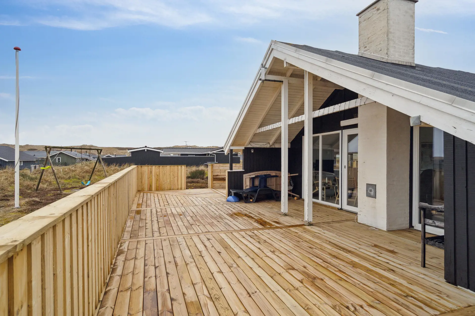 Lehnt euch mit einem frisch gebrühten Kaffee und eurem Lieblingsbuch zurück und genießt die frische Meeresluft, während eure Kinder Schaukeln oder im Sandkasten spielen. Zum Abschluss eines perfekten Urlaubstages könnt ihr dann noch auf dem Gasgrill ein leckeres BBQ zaubern und an der frischen Luft zusammen essen.