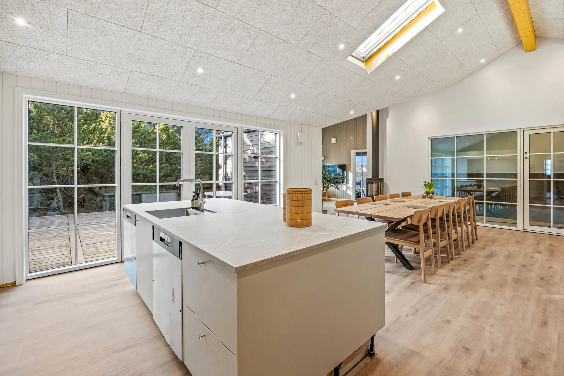 Dieses moderne Ferienhaus auf Bjerregårdsvej 189 bietet den perfekten Rahmen für einen unvergesslichen Urlaub an der dänischen Westküste. Mit Platz für 10 Personen und 2 Hunde, einem großzügigen Poolbereich mit 16 m² Pool und Gegenstromanlage, einem großartigen Aktivitätsraum sowie Außendusche, Holzofen, Fußbodenheizung in den Bädern und vielem mehr bleiben keine Wünsche offen.