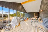Geschlossene Terrasse mit Außendusche, E-Ladesäule und Gasgrill