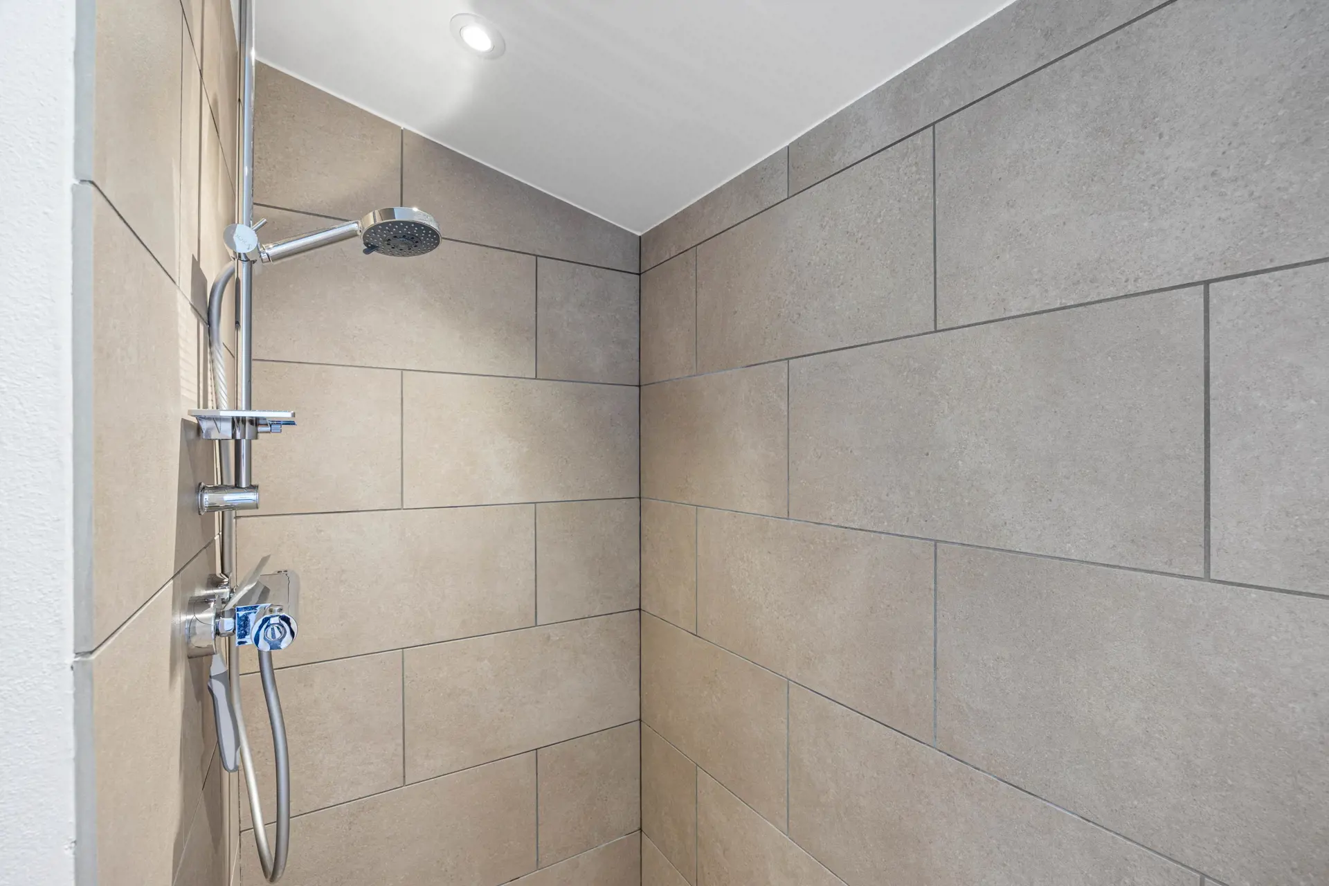 Das kleine, aber feine Badezimmer verfügt über Fußbodenheizung, die besonders an kühleren Tagen für ein angenehmes Raumklima sorgt.