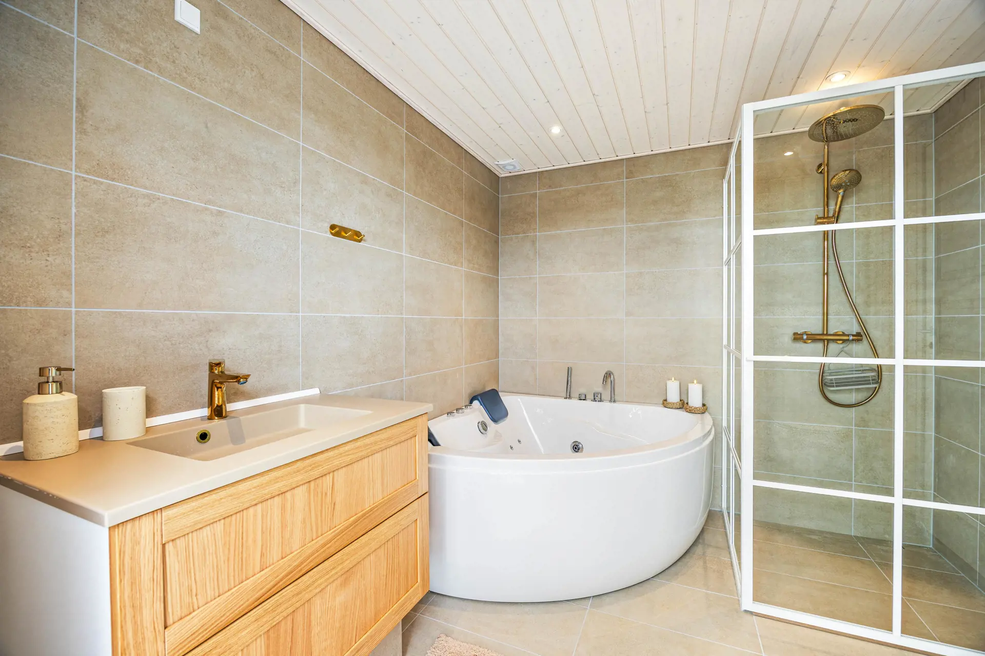 Die 4 Schlafzimmer bieten euch 8 komfortable Schlafplätze, aufgeteilt in 2 Doppelbetten und 4 Einzelbetten – ideal, um euch nach Bedarf einzurichten. 3 geräumige Badezimmer verhindern lange Wartezeiten am Morgen, und im wohltuenden Whirlpool könnt ihr euch nach einem erlebnisreichen Tag die verdiente Entspannung gönnen.