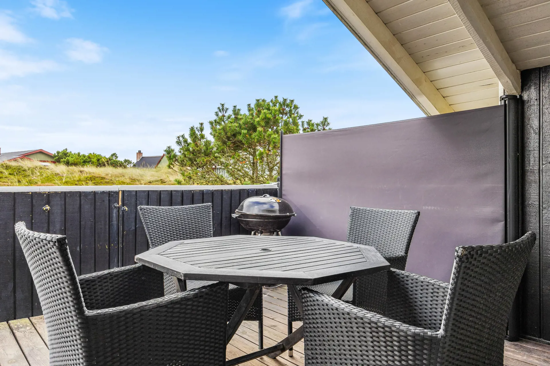 Auch draußen bietet das Ferienhaus in Bjerregård einige Möglichkeiten, die frische Nordseeluft zu genießen. Es gibt eine offene, eine geschlossene und eine überdachte Terrasse, die dir zu jeder Tageszeit einen passenden Platz bieten. Die Möbel laden zum Verweilen und Entspannen ein – sei es bei einem Frühstück an der Morgensonne oder einem ruhigen Abend im Freien.