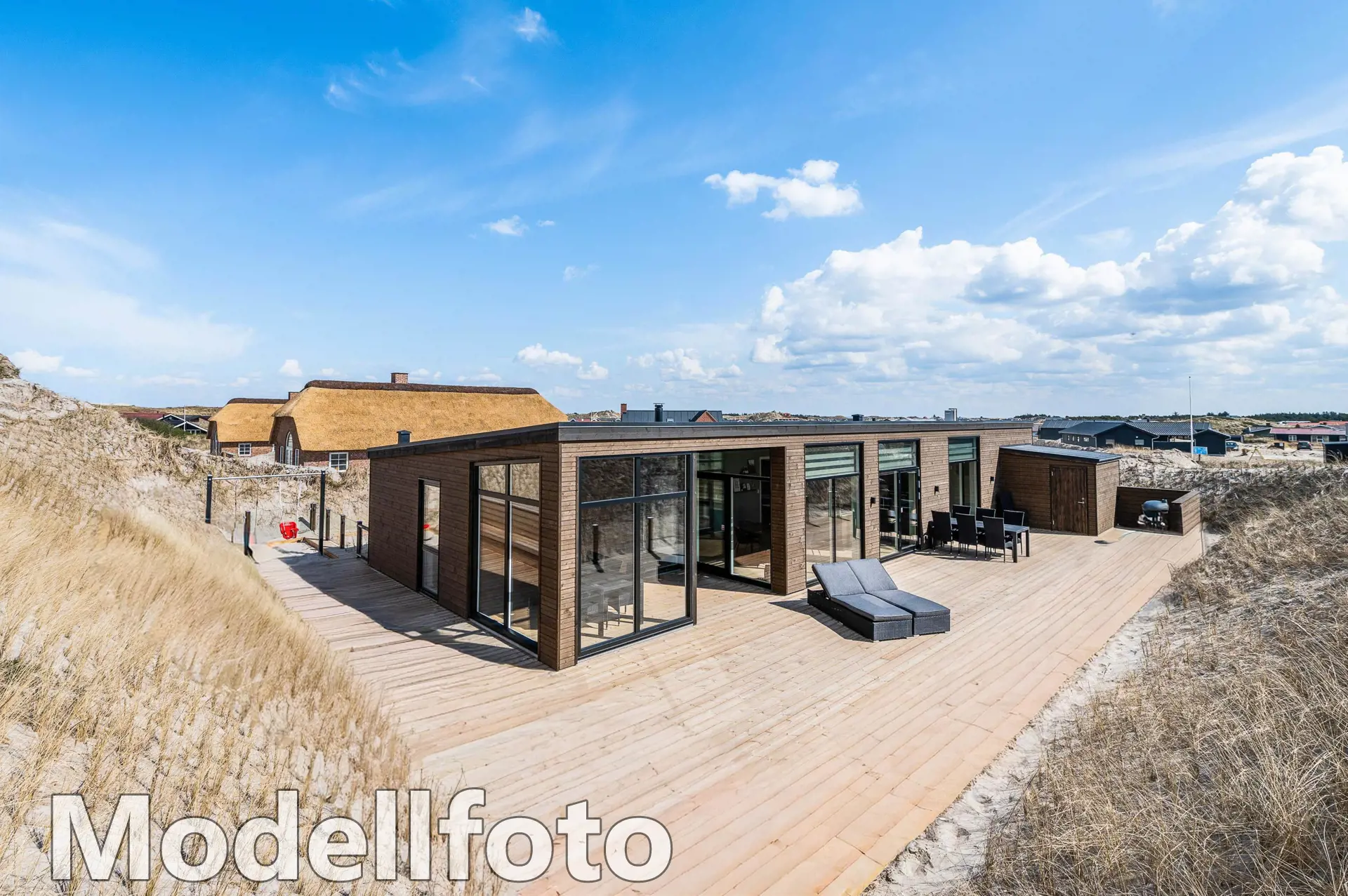 Ferienhaus B2699 in Julianevej 16, BjerregardHerzlich willkommen in diesem einladenden Ferienhaus. Auf Julianevej 16 erwartet euch ein modernes Ferienhaus in Bjerregård, das mit viel Komfort und einer hochwertigen Ausstattung überzeugt. Hier findet ihr auf 135 m² Platz für insgesamt 6 Personen – ideal, um gemeinsam eine erholsame Auszeit an der dänischen Westküste zu genießen. Die obligatorische Endreinigung ist bereits inklusive, sodass ihr euch voll und ganz auf eure Erholung konzentrieren könnt. Einladendes Ferienhaus – Komfort, Stil und modernes WohnenGebaut im Jahr 2026 und als großzügiges Aktivitätshaus konzipiert, bietet euch dieses Ferienhaus eine gelungene Kombination aus modernem Stil und funktionalem Wohnkomfort. Der offene Wohnbereich bildet das Herz des Ferienhauses. Ein Kaminofen sorgt für behagliche Wärme, während die Wärmepumpe das Raumklima angenehm reguliert. Die Küche ist modern und gut ausgestattet, sodass ihr mühelos gemeinsame Mahlzeiten zubereiten könnt. Ein Induktionsherd und eine Spülmaschine sorgen für Komfort im Alltag.Der 90-Liter-Tiefkühler bietet euch dabei ausreichend Platz für eure Vorräte. Drei gemütliche Schlafzimmer mit 2 Doppelbetten und 2 Einzelbetten schenken euch erholsame Nächte und ausreichend Platz für alle Personen. Besonders komfortabel ist dabei, dass eines der Doppelzimmer über ein Badezimmer en Suite verfügt, was euch zusätzliche Privatsphäre und Bequemlichkeit während eures Aufenthalts bietet. Die 2 modern ausgestattete Badezimmer, verfügen beide über eine Fußbodenheizung. Zusätzlich erwartet euch ein separater Aktivitätsraum mit Tischtennis, der an weniger sonnigen Tagen für Unterhaltung sorgt und euch vielfältige Möglichkeiten für gemeinsame Freizeitmomente bietet. Eine Waschmaschine sowie ein Trockner ergänzen die praktische Ausstattung im Innenbereich und machen euren Aufenthalt besonders komfortabel. Terrassen mit Außenwhirlpool und SaunaDer großzügige Außenbereich fügt sich natürlich in das rund 1.269 m² große Naturgrundstück ein und schenkt euch viel Raum für entspannte Stunden und kleine Aktivitäten an der frischen Luft. Mehrere Terrassen – eine offene, eine geschützte und eine überdachte – laden euch dazu ein, zu jeder Tageszeit einen gemütlichen Platz im Freien zu finden. Während ihr im warmen Außenwhirlpool wohltuende Ruhe genießt, erwartet euch in der separaten Außensauna ein ganz besonderes Wellnesserlebnis. Auch die ganzjährig nutzbare Außendusche sorgt dafür, dass ihr jederzeit den Sprung zwischen Wärme und Frische wagen könnt. Mit dem Ladeanschluss für euer E-Auto bleibt ihr flexibel unterwegs, und die kurze Distanz erleichtert eure Urlaubsplanung: Der Strand liegt nur 600 m entfernt, und bis zum nächsten Einkauf sind es gerade einmal 700 m. So erreicht ihr alles schnell und mühelos – ganz so, wie ein erholsamer Urlaub sein soll. Bjerregård – euer Urlaubsort an der dänischen WestküsteEin Ferienhaus in Bjerregård bietet euch die perfekte Kulisse für unvergessliche Urlaubstage. Der kleine Ort liegt eingebettet zwischen Dünen, Wasser und weitläufiger Natur und zählt zu den beliebtesten Feriengebieten an der dänischen Westküste. Hier könnt ihr lange Spaziergänge entlang der Küste genießen, mit dem Fahrrad die umliegende Landschaft erkunden oder einfach die besondere Atmosphäre dieser Region erleben. Die Nähe zu Strand und Natur schenkt euch viele Gelegenheiten, den Alltag hinter euch zu lassen und in euer eigenes Urlaubstempo zu finden. Ob ihr entspannen, aktiv sein oder einfach die Weite der Landschaft auf euch wirken lassen möchtet – Bjerregård bietet euch all das.