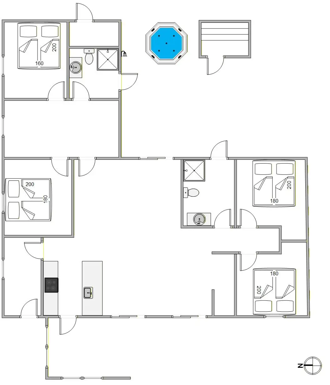 Mit einer großzügigen Wohnfläche von 174 m² bietet dieses traumhafte Ferienhaus viel Platz für bis zu 8 Personen und ist perfekt für unvergessliche Urlaubsmomente mit Familie oder Freunden.