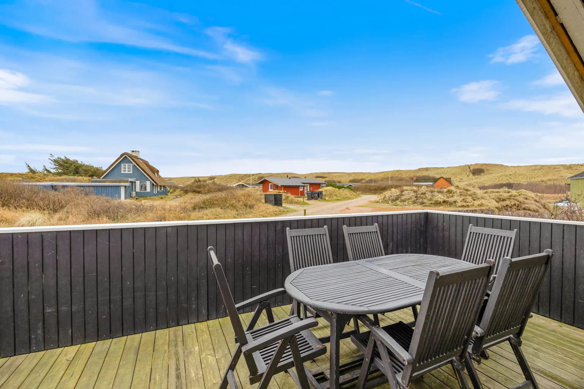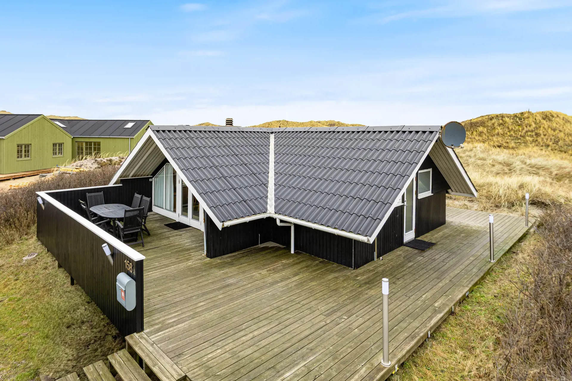 Zum Ferienhaus gehört eine abgeschirmte Terrasse, auf der ihr je nach Wetter draußen sitzen könnt. Das Grundstück ist ein Naturgrundstück und zugleich ein Dünengrundstück, wodurch ihr euch in einer typischen Umgebung dieser Region bewegt.