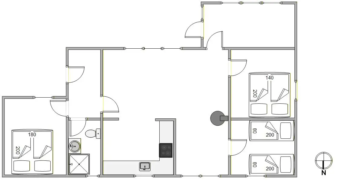 Im Inneren erwartet euch ein heller, freundlicher Wohnbereich, der zum gemeinsamen Verweilen einlädt. Die offene Gestaltung schafft eine angenehme Verbindung zwischen Küche, Essplatz und Wohnzimmer. Mit Holzofen und Wärmepumpe ist das Ferienhaus flexibel beheizbar. So genießt ihr wohlige Wärme ebenso wie eine moderne, sparsame Lösung.