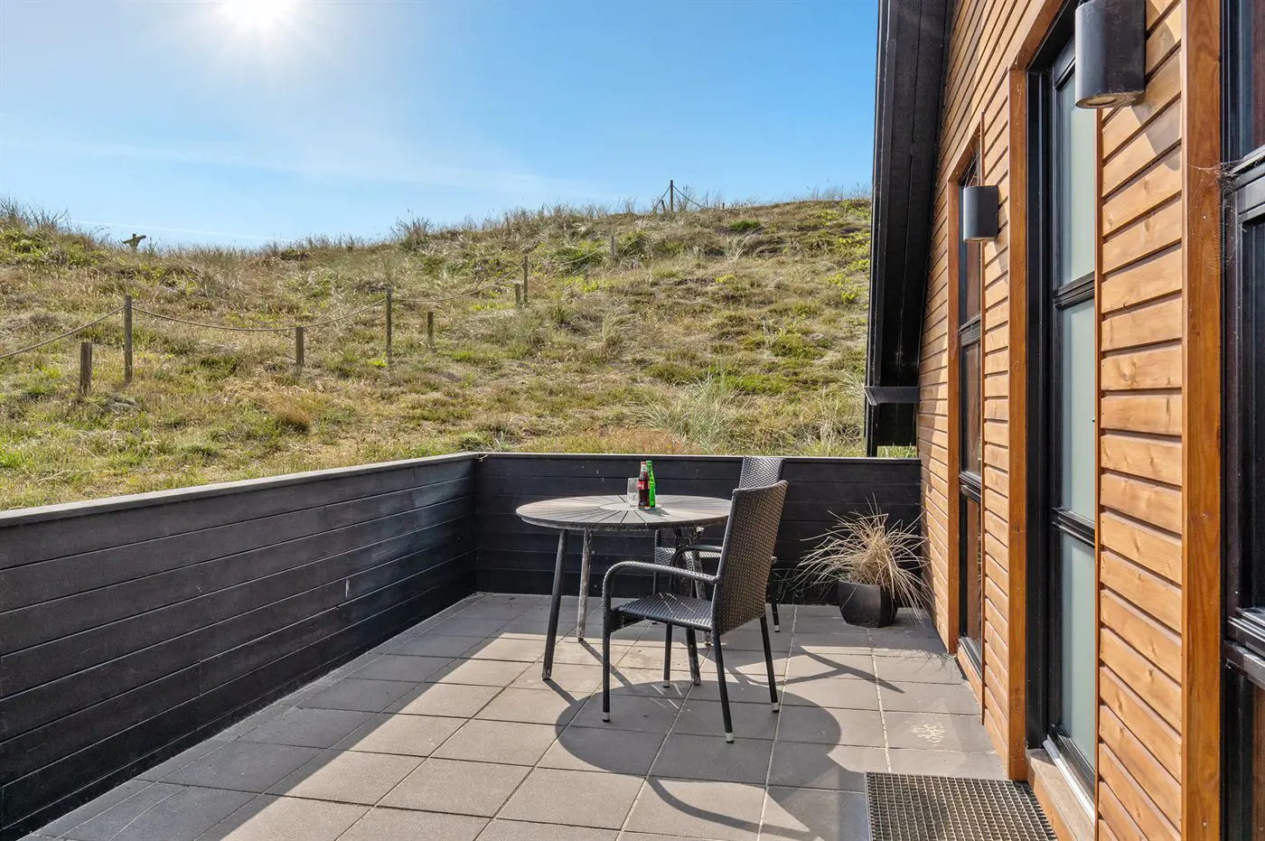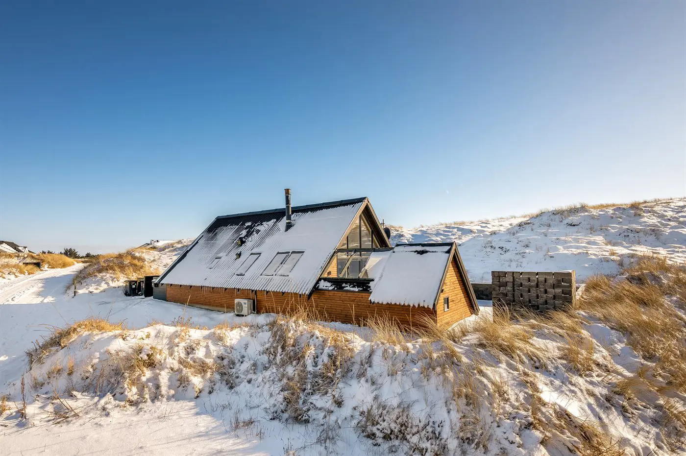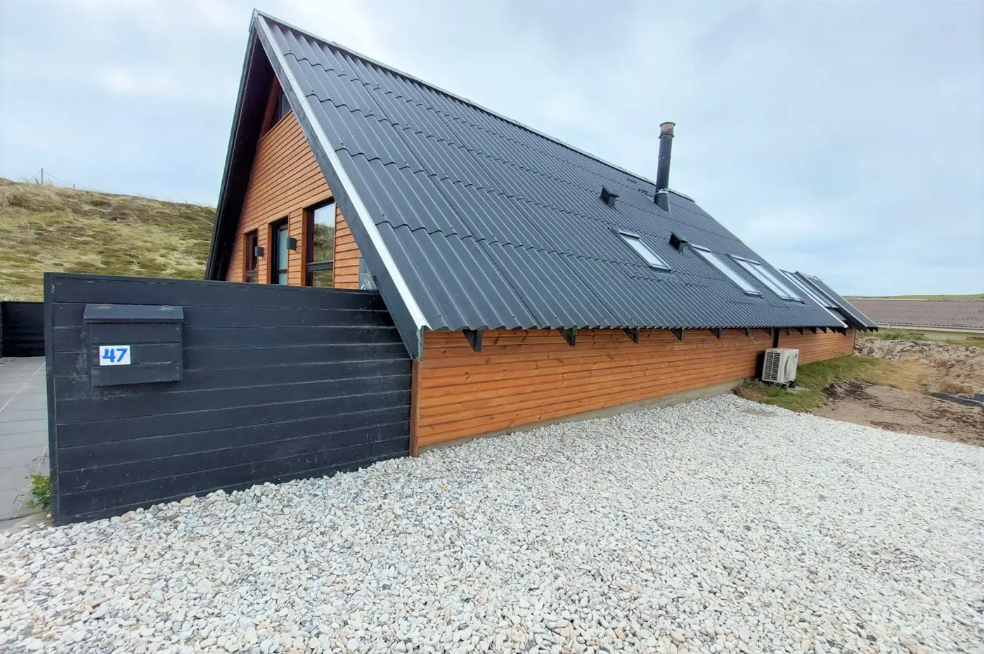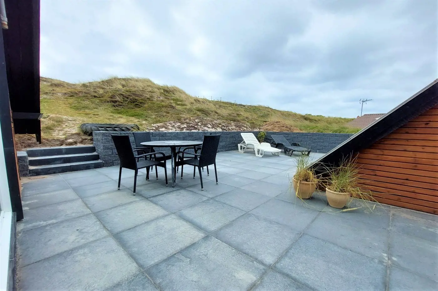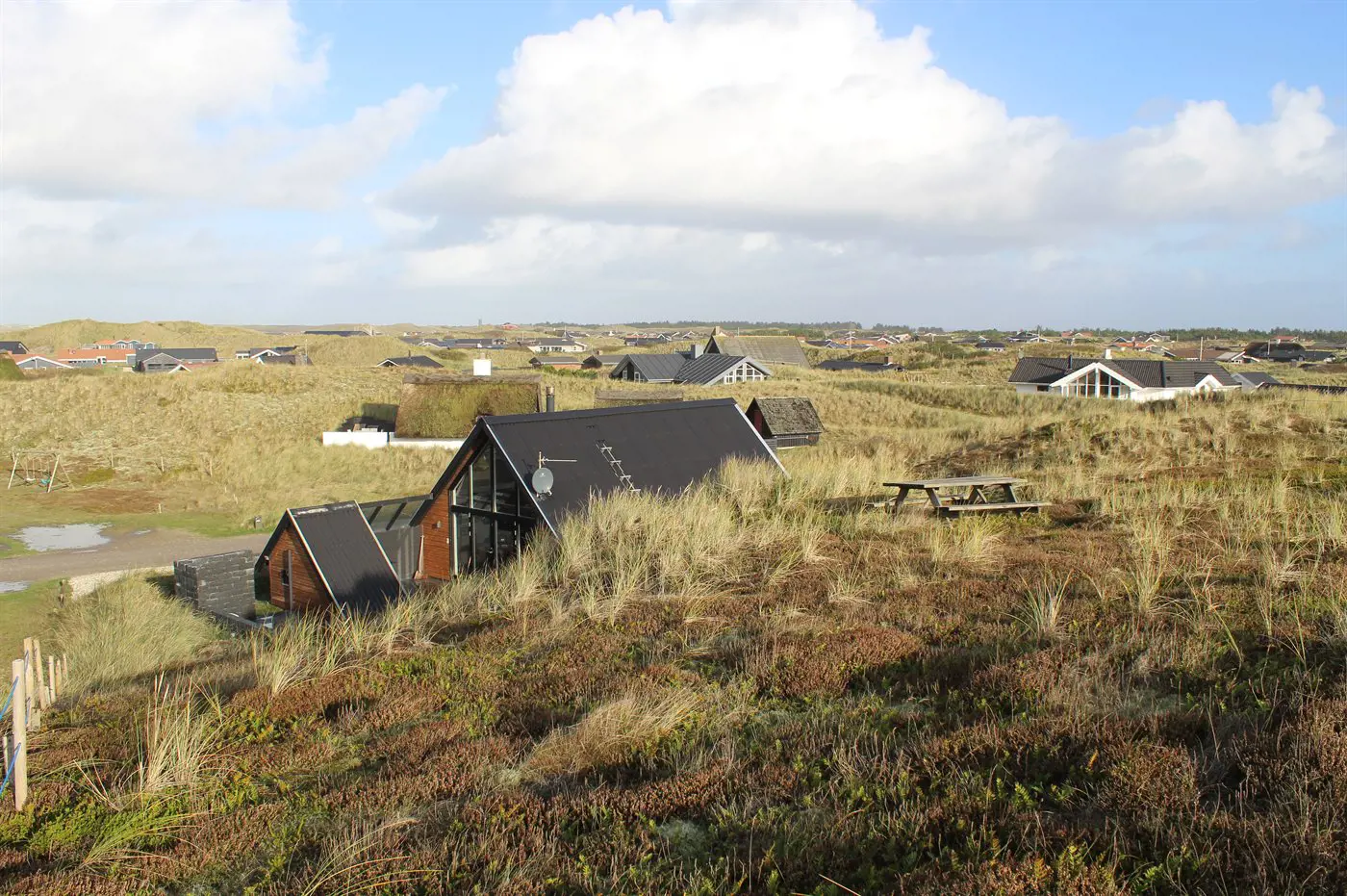 Die Ferienunterkunft liegt auf einem 1509 m² großen Dünengrundstück. Die Entfernung zum Meer beträgt 150 m. Die Entfernung zum Fjord beträgt 2000 m. Die nächste Einkaufsmöglichkeit liegt 1100 m entfernt. Es steht ein 74 m² Terrassenareal zur Verfügung. Außerdem gibt es 4 m² überdachte Terrasse. Die Entfernung zu einem Spielplatz beträgt 1100 m. Es steht ein Grill zur Verfügung. Es ist ein Ladestecker für Elektroautos installiert. CEE Stecker. Parkplatz auf dem Grundstück.