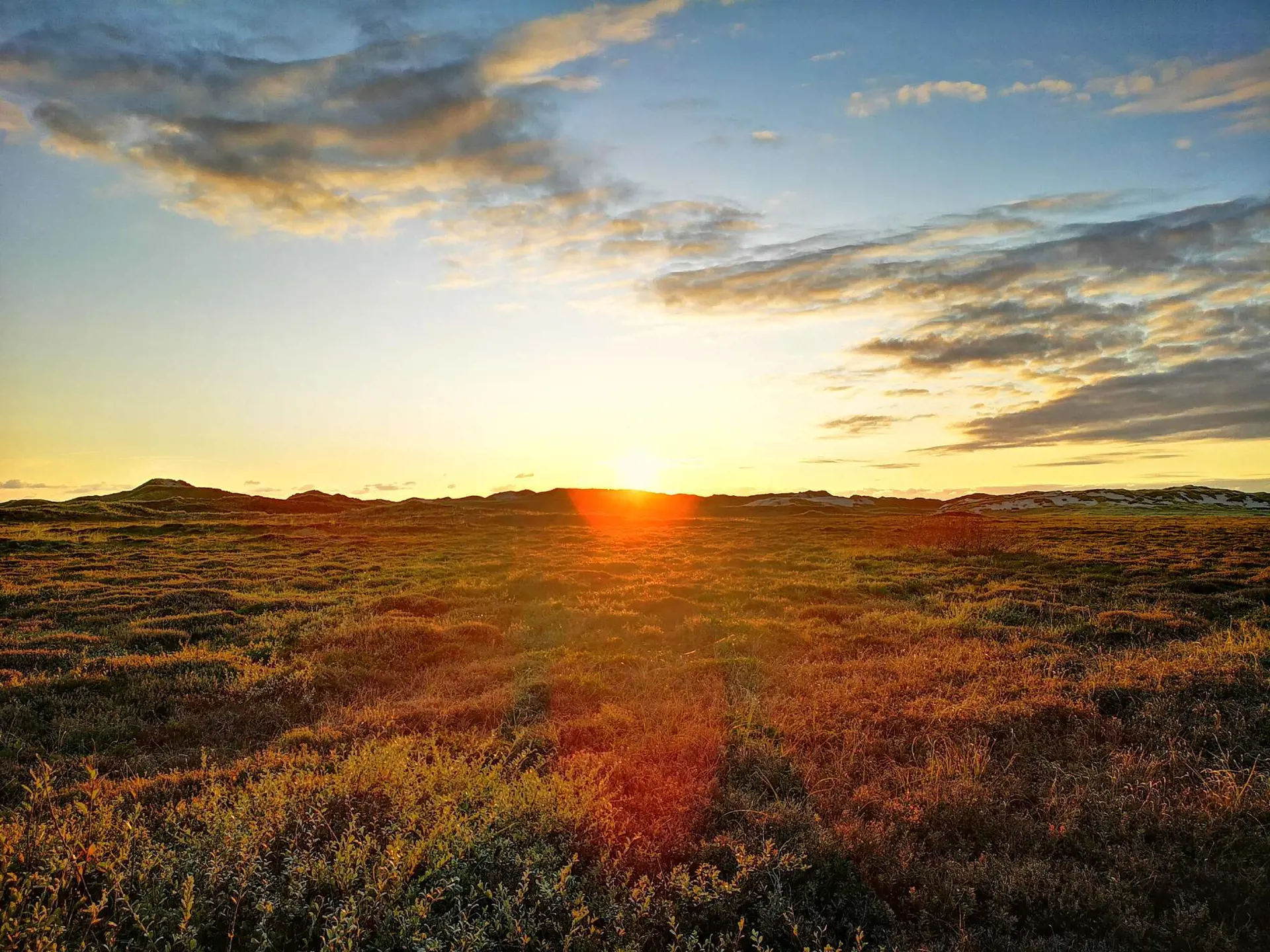 Innen gibt es einen offenen Küchen-/Wohnbereich mit Essecke und großer Fensterfläche sowie Zugang zur Südterrasse des Hauses, von der Sie herrlichen Ausblick zur umliegenden Dünenlandschaft haben.
