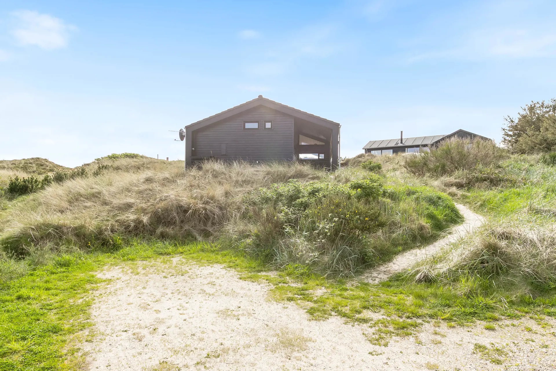 Das Ferienhaus wird über einen Sandweg erreicht, der auf die Düne hinaufführt und die naturnahe Lage unterstreicht.