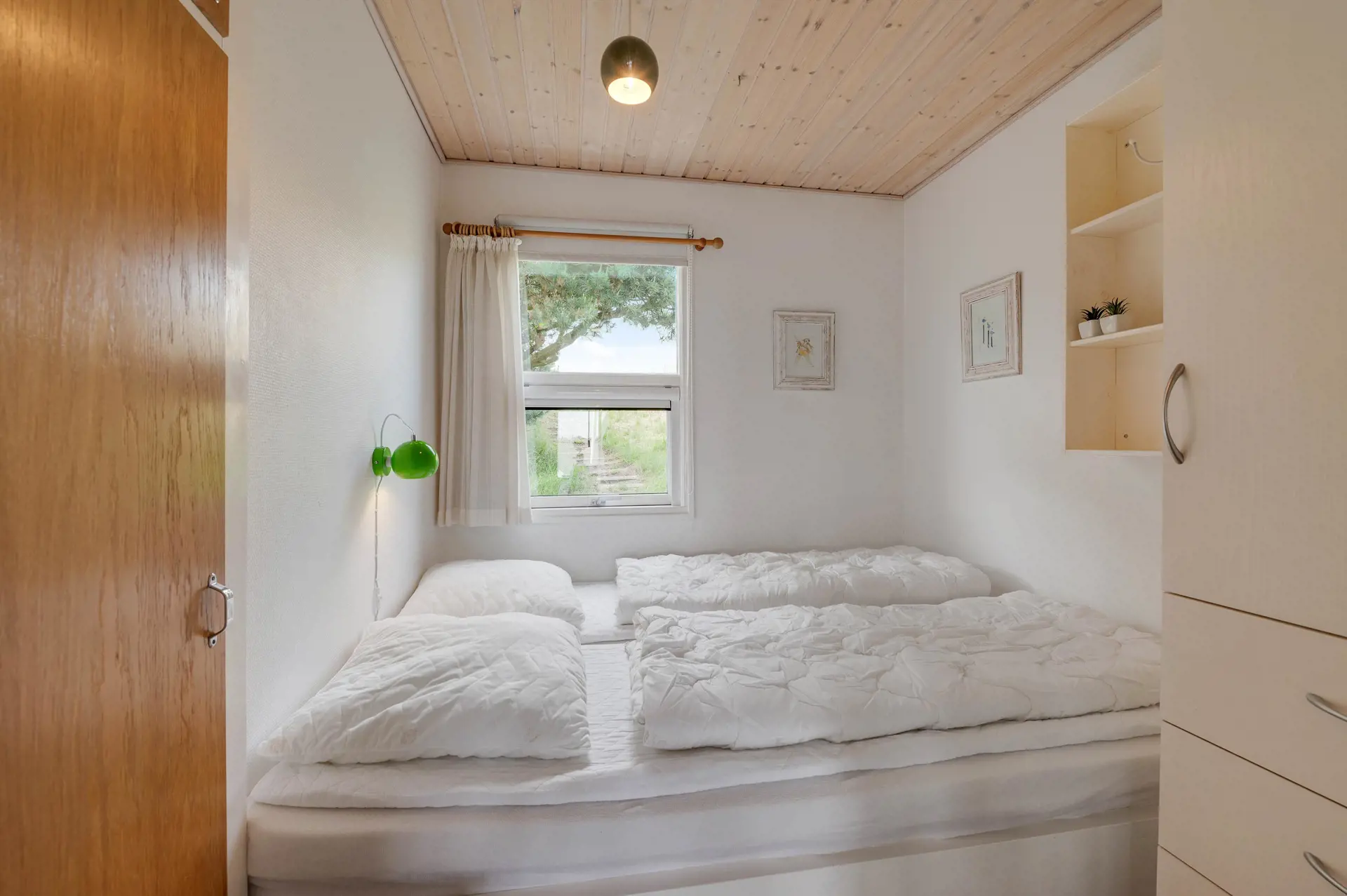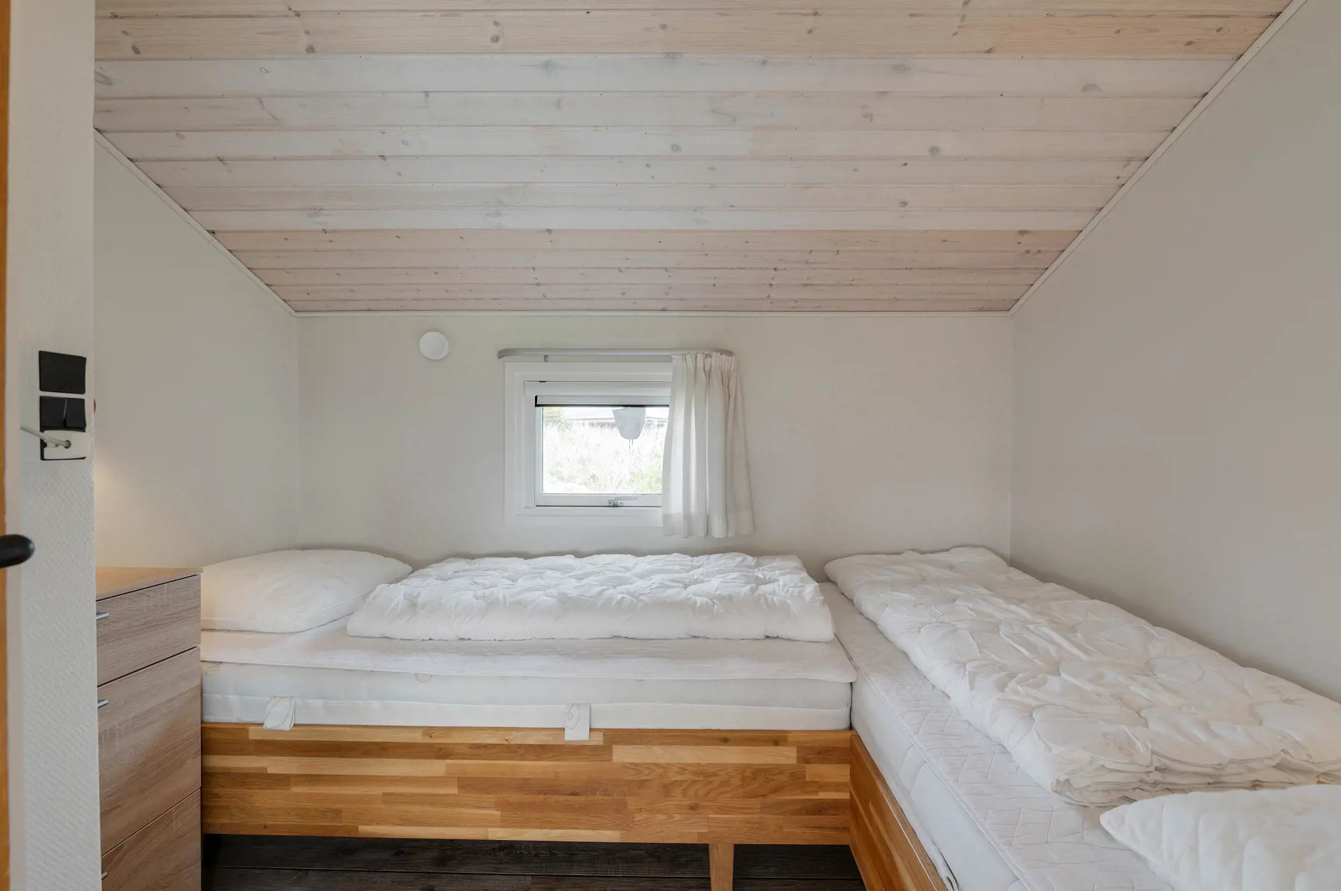 Genießt euer frischzubereitetes Abendessen in der gemütlichen Sitzecke am Fenster mit einem wunderschönen Ausblick in die Natur der Dünenlandschaft von Haurvig. Danach sorgen drei Schlafzimmer mit zwei Einzelbetten und zwei Doppelbetten für eine erholsame Nachtruhe. Eine energiesparende Wärmepumpe bietet euch eine alternative Heizmethode, welche ihr jederzeit hinzuschalten könnt.