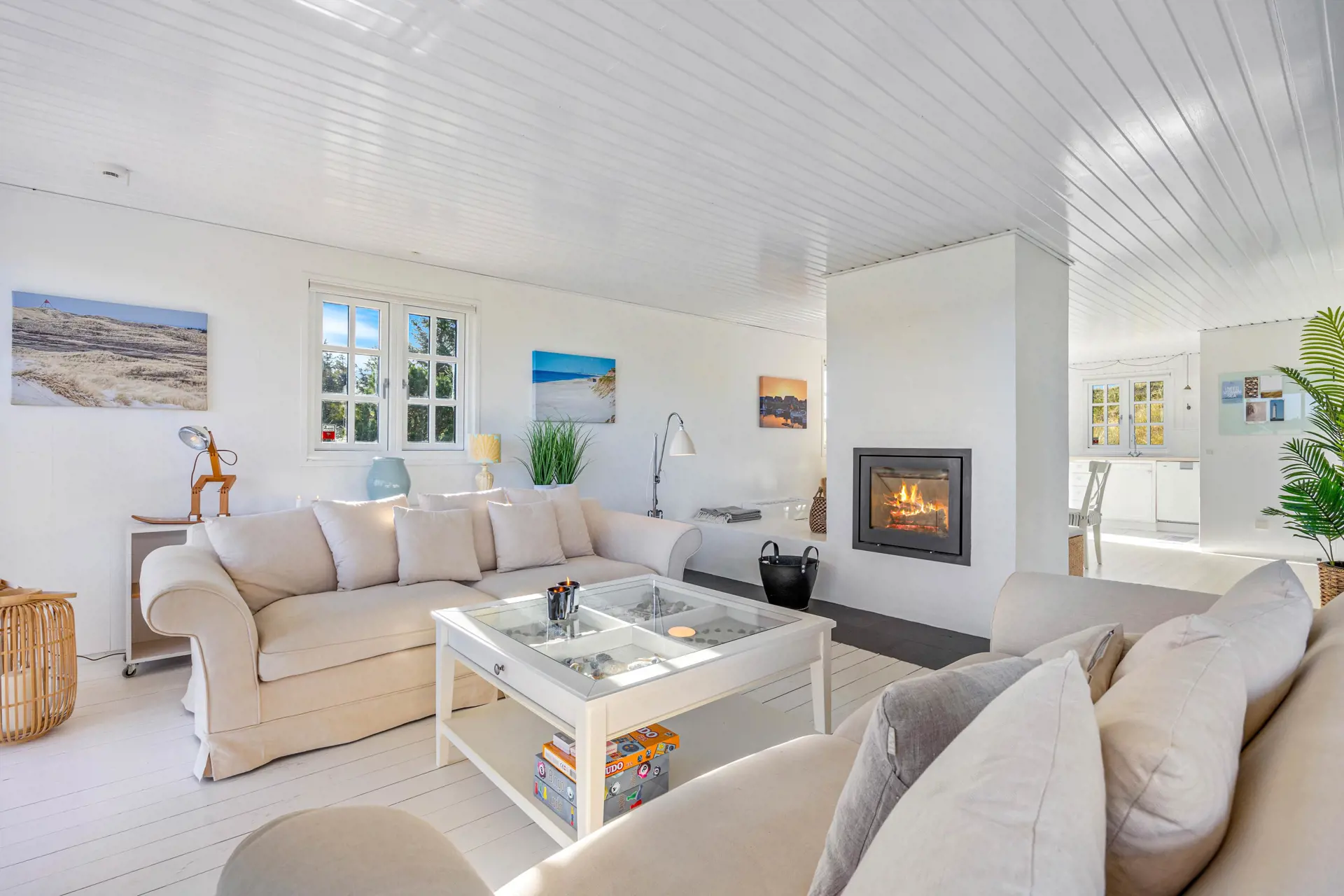 Der Mittelpunkt des Ferienhauses in der Tornbjerrevej 62 ist der helle Wohnraum, der euch mit seiner freundlichen Einrichtung und der gemütlichen Sofaecke sofort in Urlaubsstimmung versetzt. Nach einem Spaziergang am Meer könnt ihr es euch hier am knisternden Kaminofen bequem machen und die wohlige Wärme genießen.