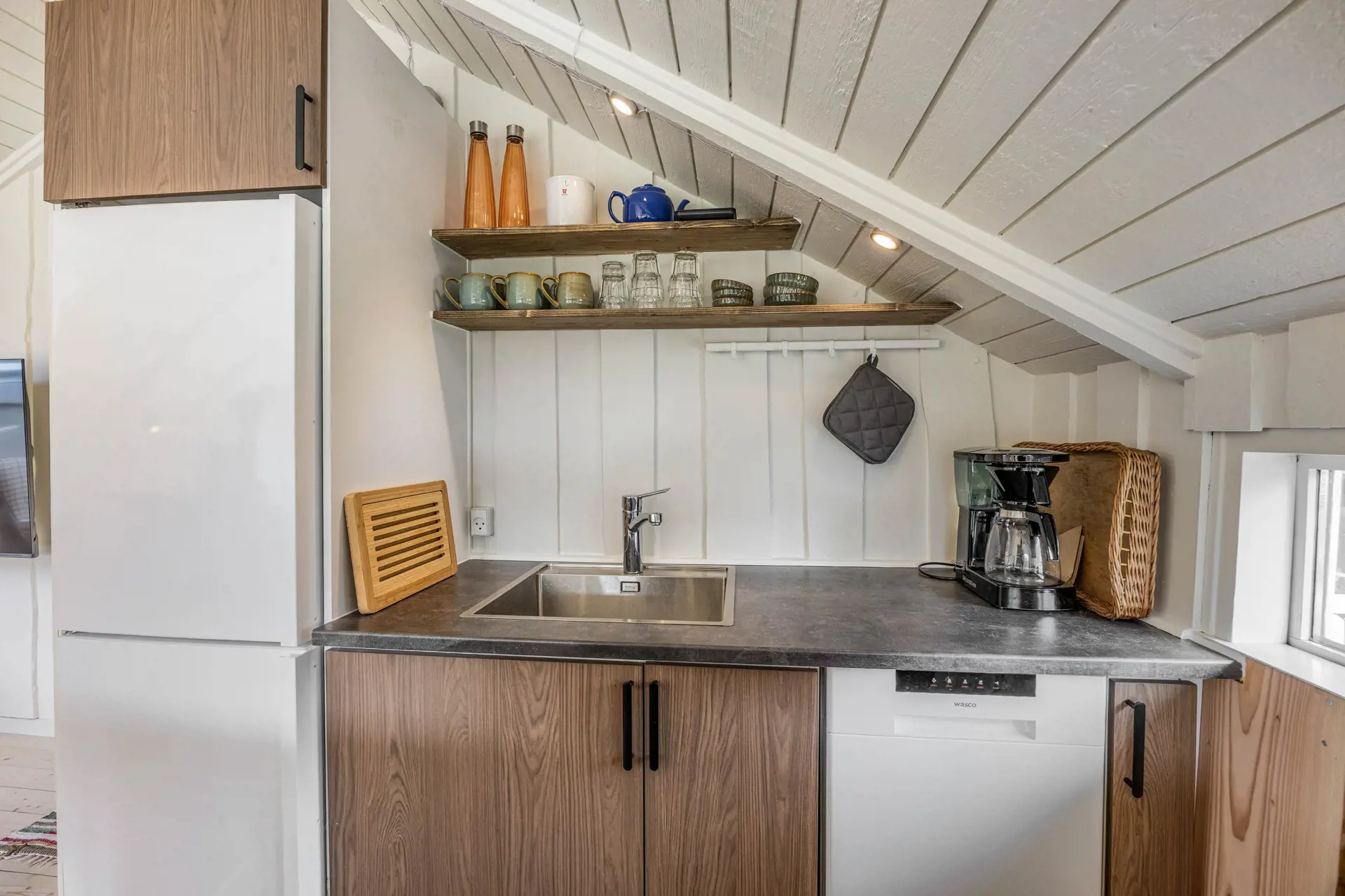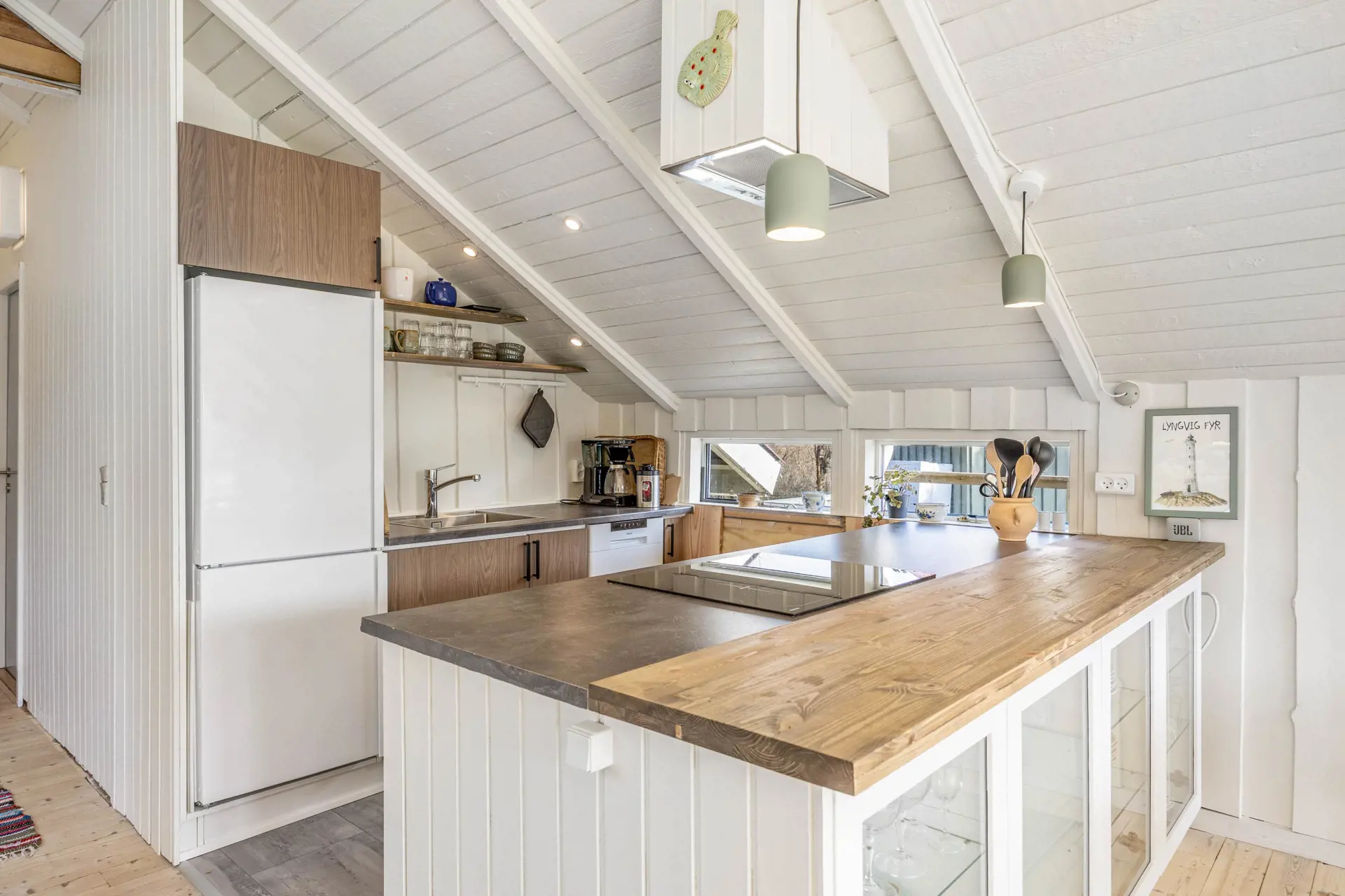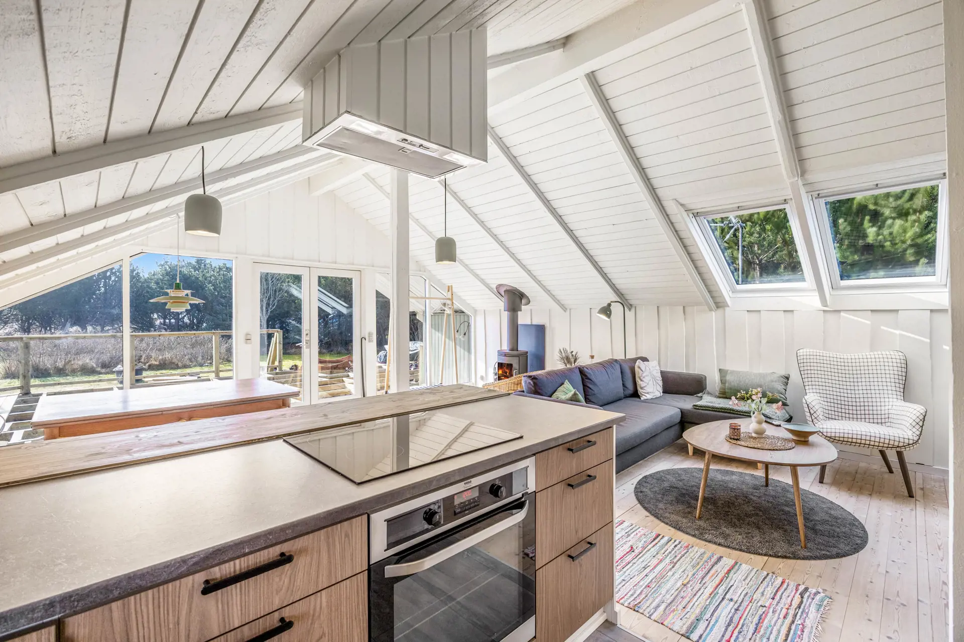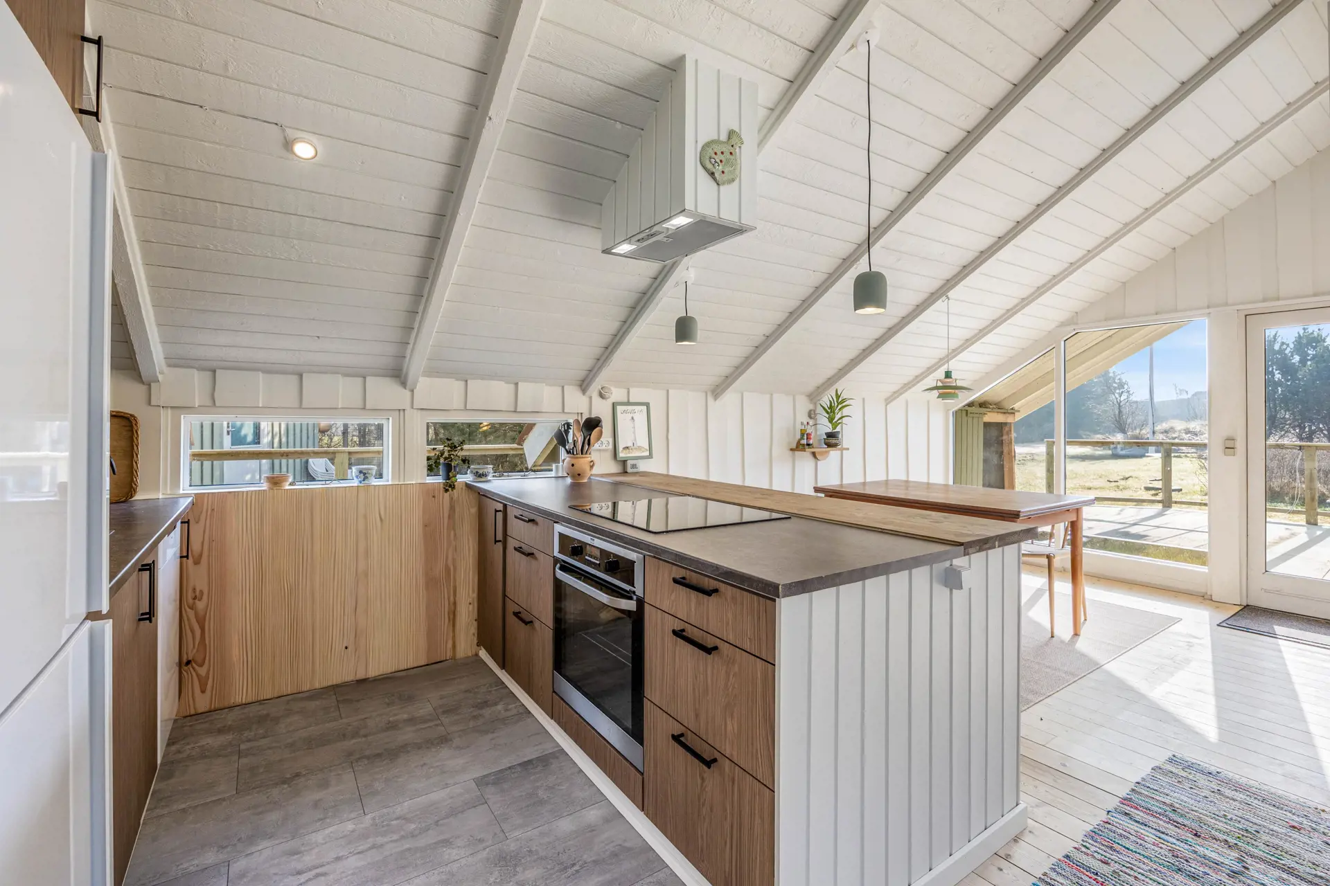 Im Inneren überzeugt das Ferienhaus mit einer harmonischen Kombination aus Funktionalität und Gemütlichkeit. Der Wohnbereich lädt mit Kaminofen zu entspannten Abenden ein, während die Wärmepumpe für ein angenehmes Raumklima zu jeder Jahreszeit sorgt. Die Küche ist mit Spülmaschine ausgestattet und erleichtert euch den Alltag im Urlaub.
