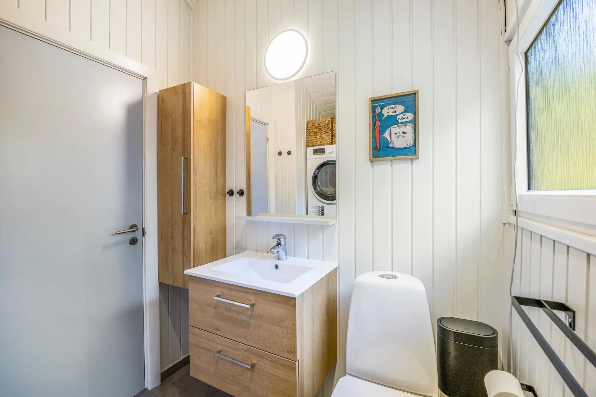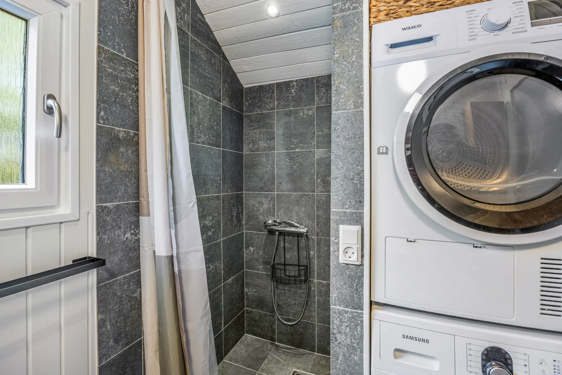 Waschmaschine und Trockner stehen ebenfalls zur Verfügung, sodass auch längere Aufenthalte komfortabel gestaltet werden können. Das Badezimmer ist modern eingerichtet und bietet eine angenehme Fußbodenheizung, die besonders an kühleren Tagen für zusätzlichen Komfort sorgt.
