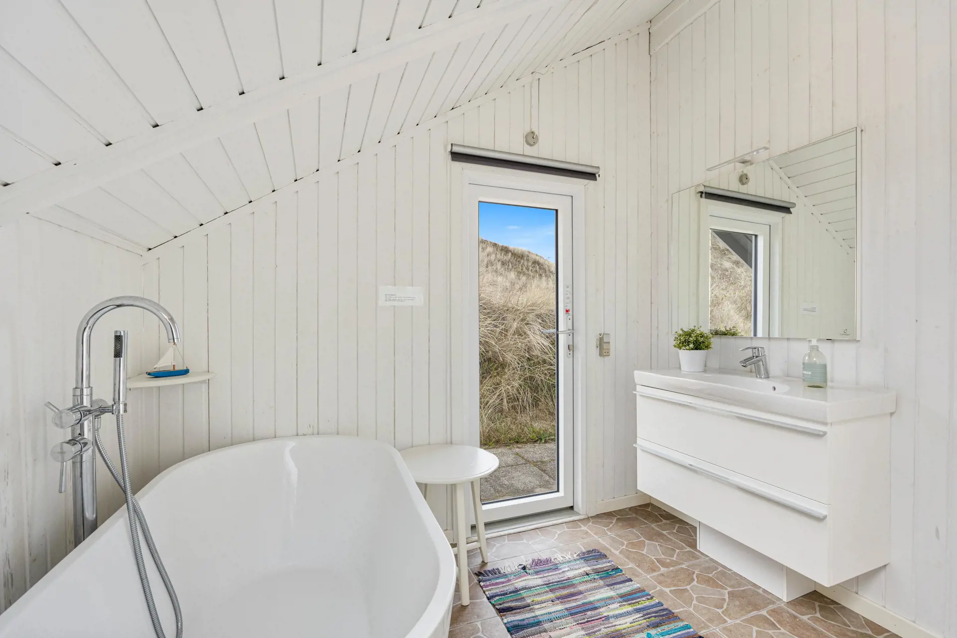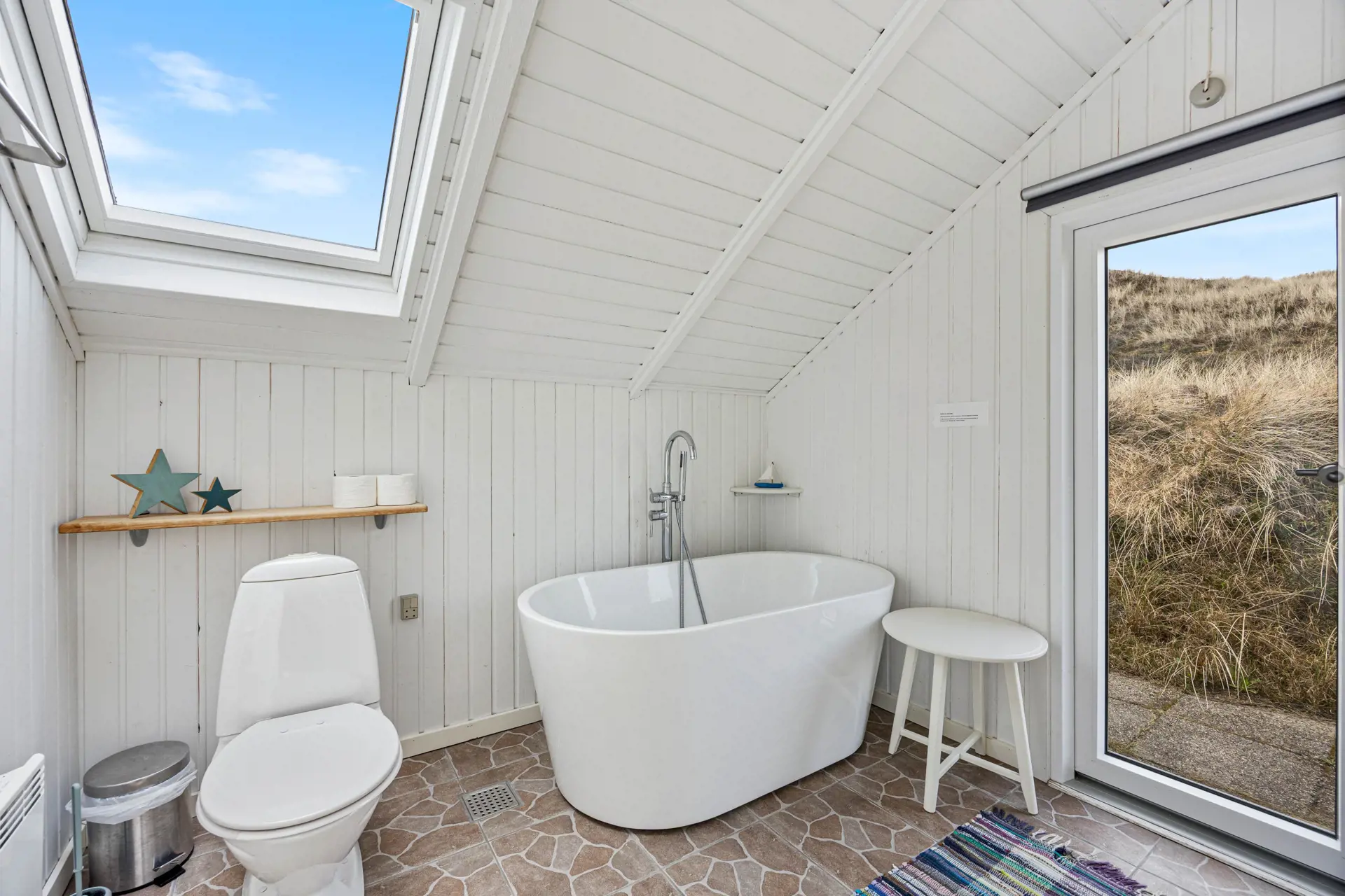 Für zusätzlichen Komfort stehen euch 2 Badezimmer zur Verfügung. Bitte beachten: eines der Badezimmer befindet sich im Annex. Das Badezimmer im Nebengebäude verfügt über eine Badewanne, die nach langen Spaziergängen durch die Dünen zum Entspannen einlädt. Die Fußbodenheizung im Bad sorgt dabei für angenehme Wärme und zusätzlichen Komfort.