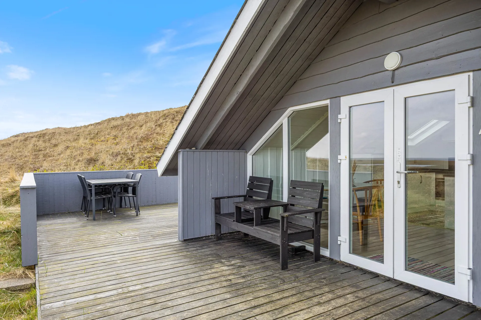 Außenbereich mit Terrasse und Dünengrundstück