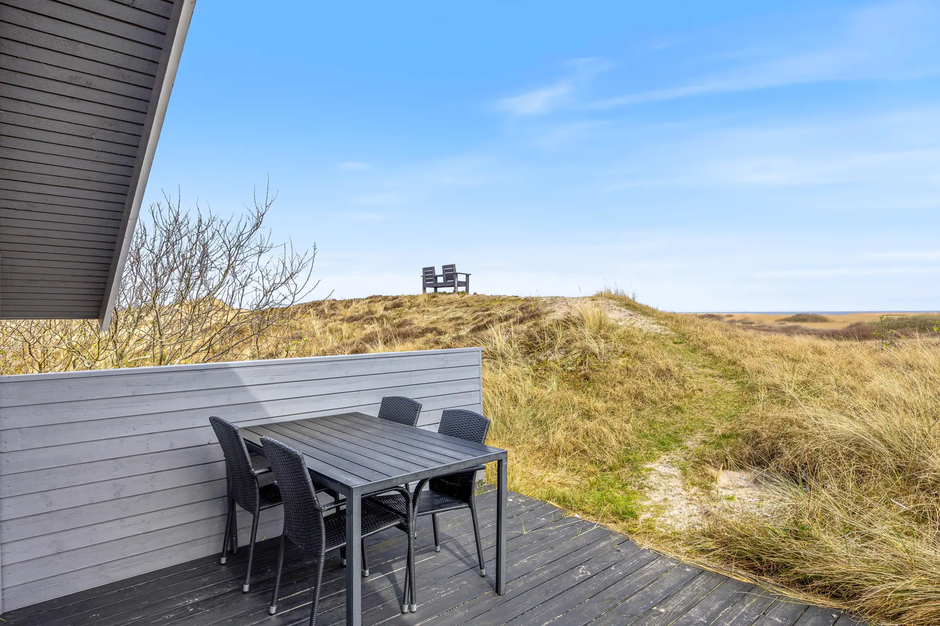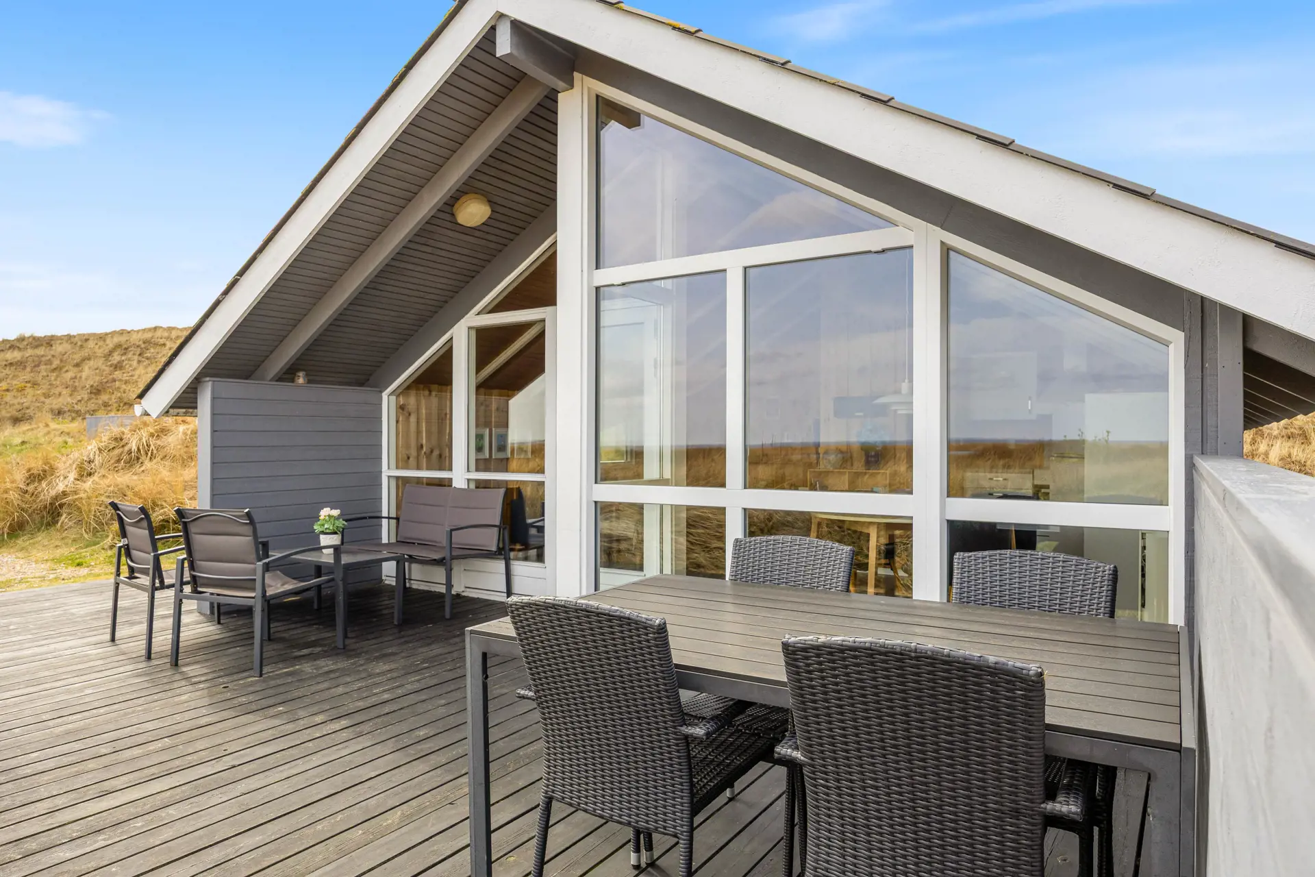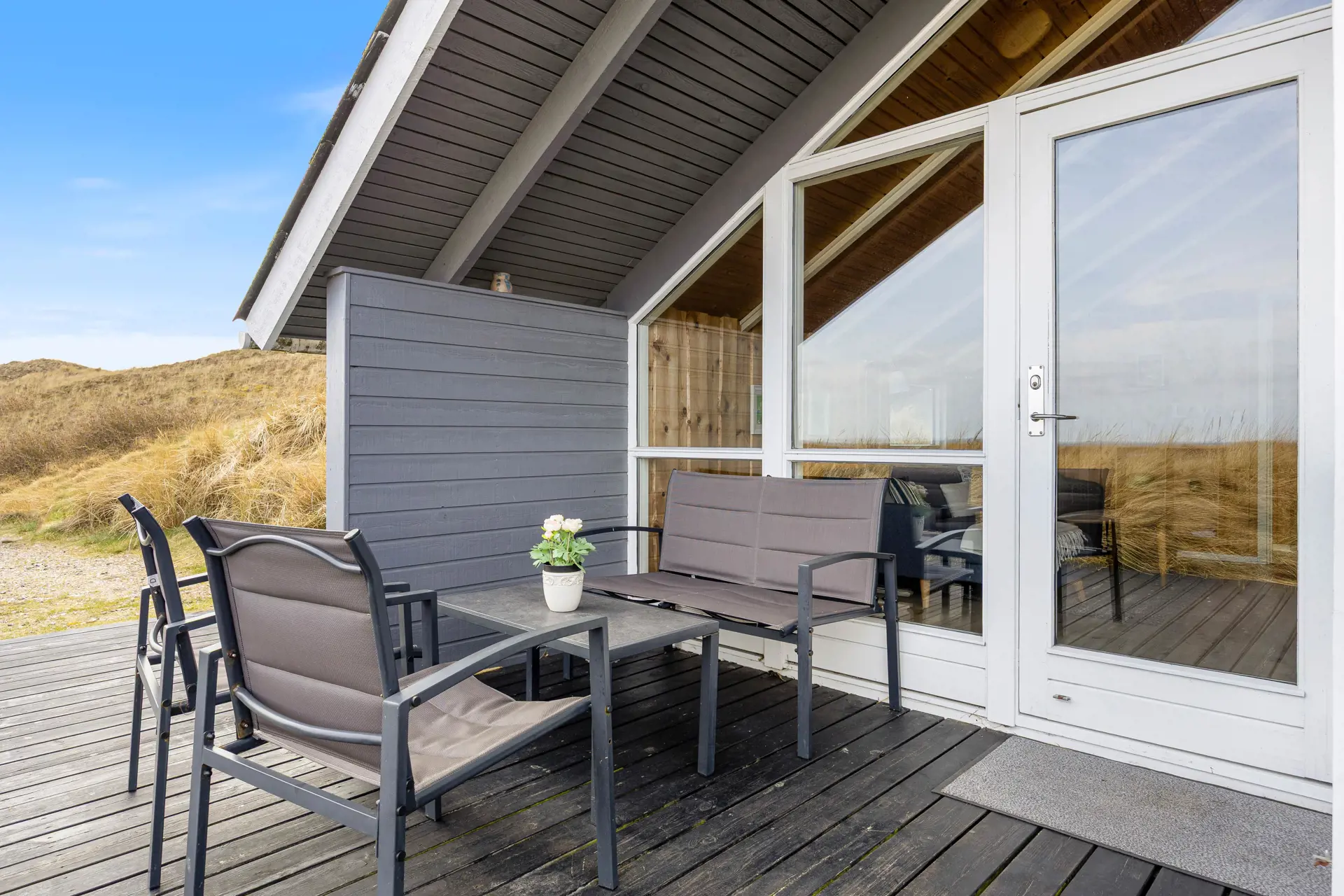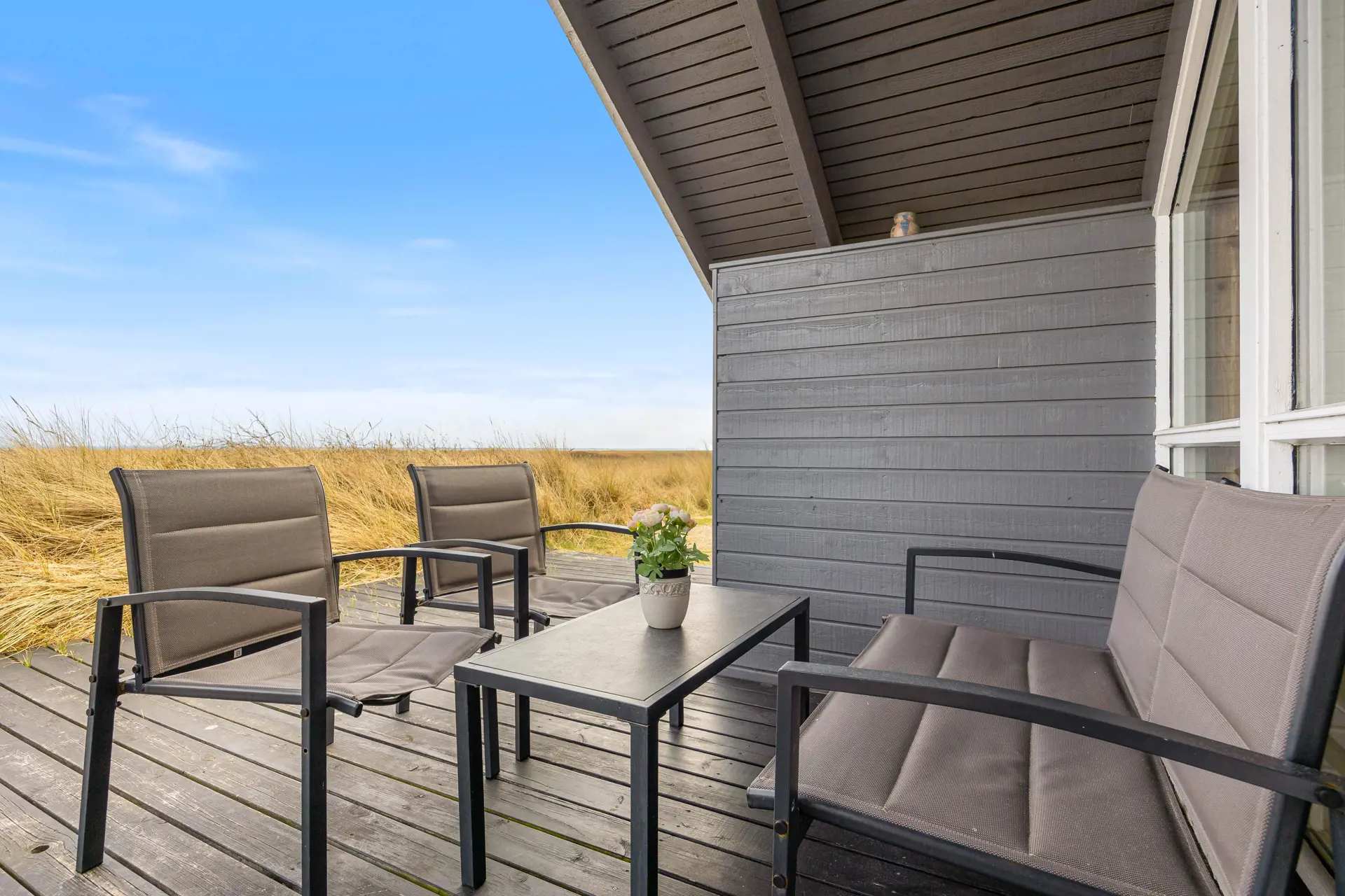 Der Außenbereich des Ferienhauses lädt euch dazu ein, die frische Nordseeluft in vollen Zügen zu genießen.