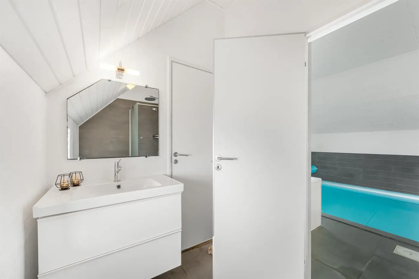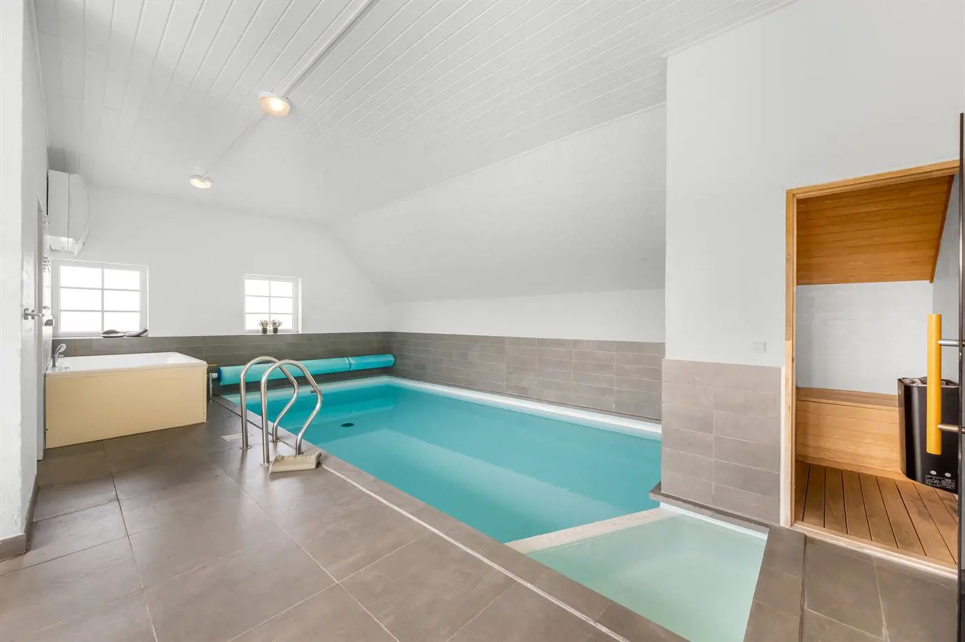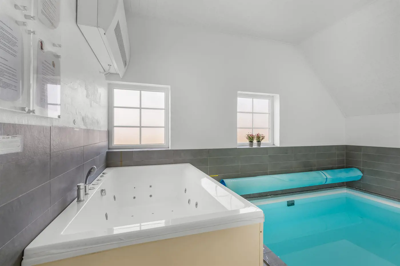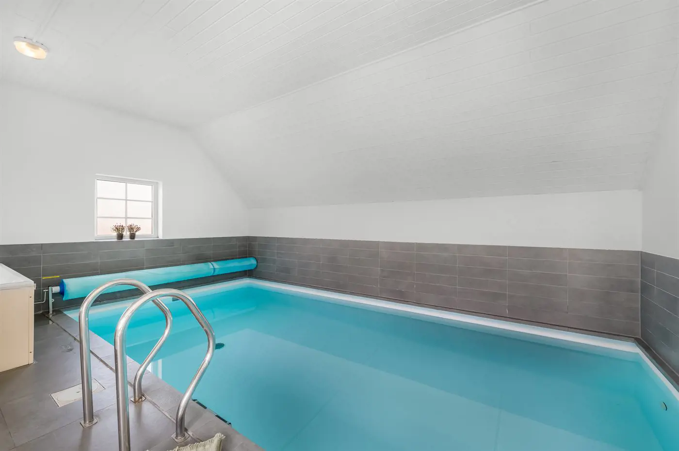 Im Swimmingpool können sich Jung und Alt gemeinsam Vergnügen. Der Swimmingpool misst bis zu 3,5 m in der Breite, 6 m in der Länge und bis zu 1,3 m in der Tiefe. Die Wassertemperatur liegt zwischen 24 und 28° C. Es ist eine Gegenstromanlage installiert. Fußbodenheizung in der Swimmingpool-Abteilung.