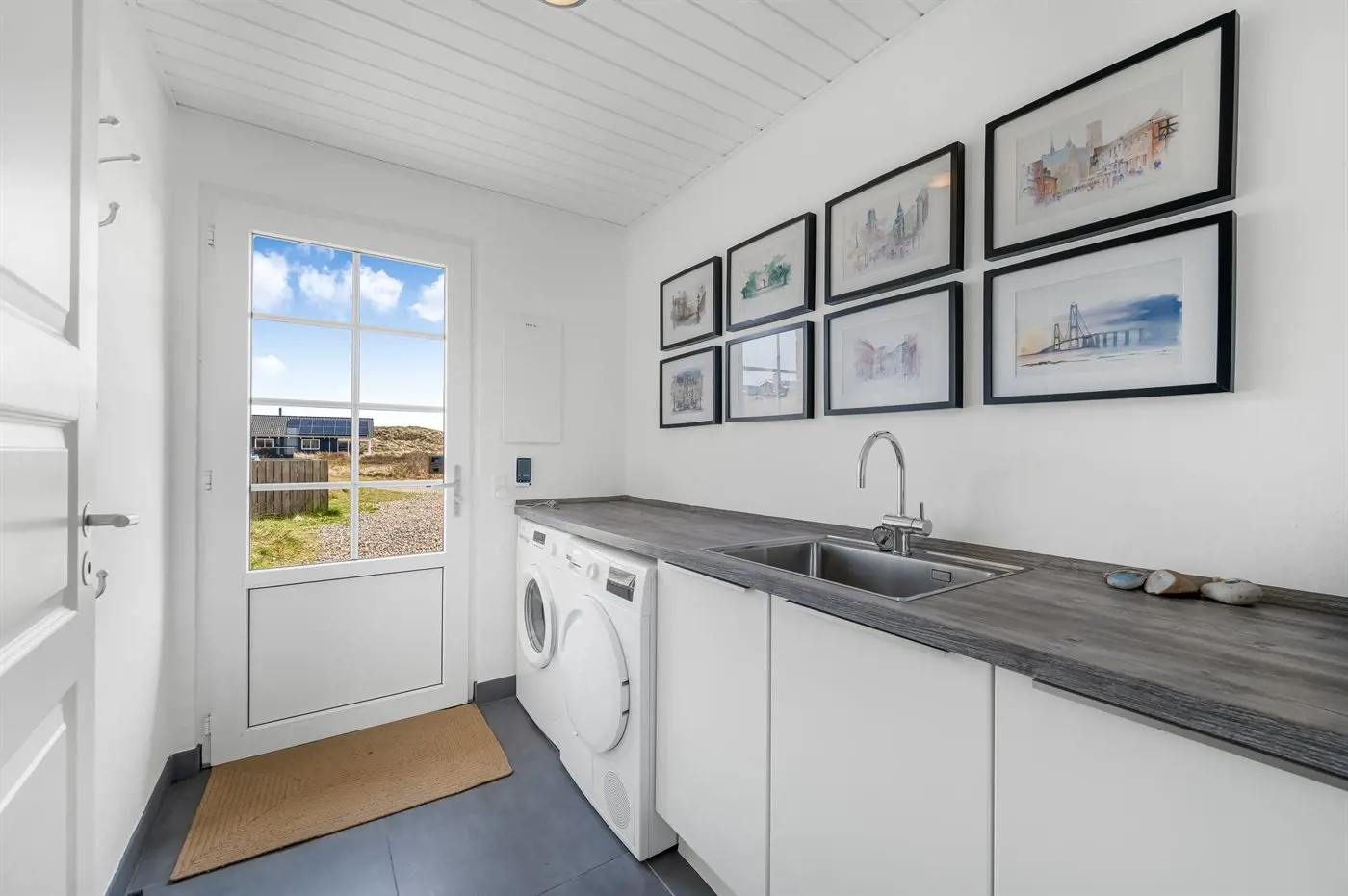 Das gemütliche Fischerdorf Hvide Sande liegt nur eine kurze Autofahrt vom Ferienhaus entfernt. Hier könnt ihr frischen Fisch kaufen, ein leckeres Mittagessen genießen oder in den kleinen Geschäften bummeln. Wenn ihr einen aktiveren Urlaub bevorzugt, bieten sich gute Möglichkeiten zum Wandern oder Radfahren auf Natur- und Radwegen, die sich durch die Dünen und Ferienhausgebiete schlängeln. Die Gegend ist außerdem für ihre hervorragenden Surfbedingungen bekannt – sowohl an der Nordsee als auch am Ringkøbing Fjord.