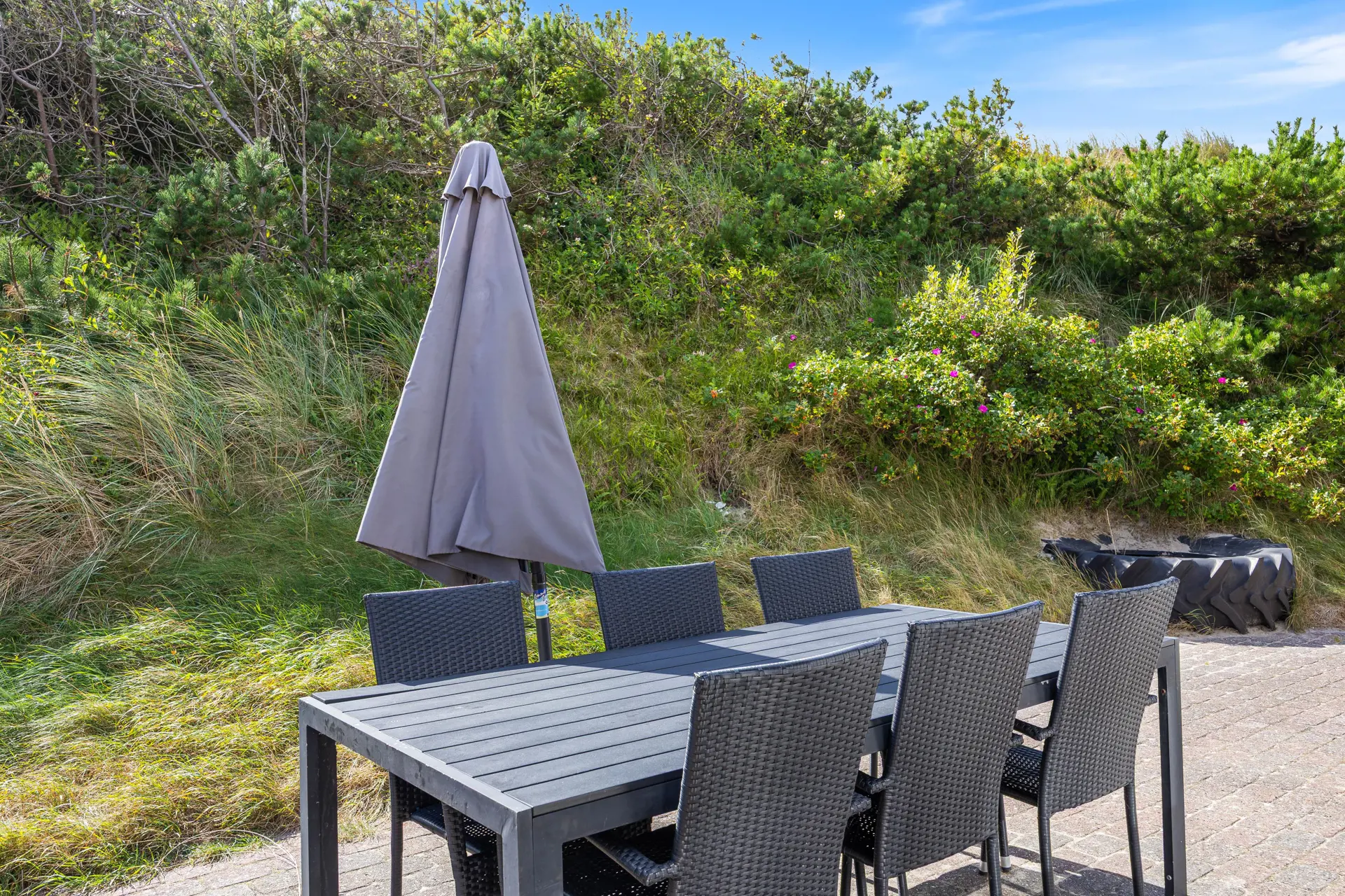 Im Außenbereich erwarten euch eine offene Terrasse, auf der ihr bei schönem Wetter den Tag beginnen oder ausklingen lassen könnt. Mit dem Grill steht ausgelassenen Abenden im Freien nichts im Wege, während ihr es euch in den bequemen Gartenmöbeln gemütlich macht. Nur ca. 250 m trennen euch vom goldenen Sandstrand, der zu langen Spaziergängen oder einem Bad in den erfrischenden Wellen der Nordsee einlädt.