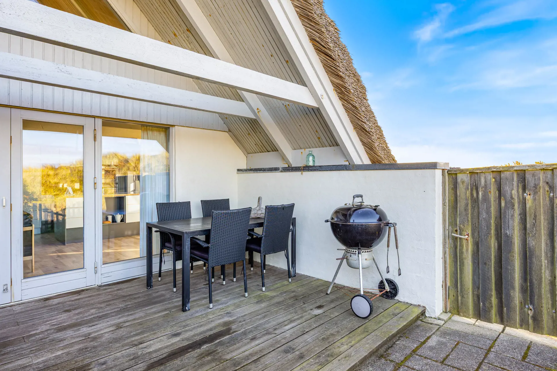 Das Ferienhaus ist sowohl gemütlich als auch modern eingerichtet und verfügt über ein großes, offenes Wohnzimmer mit Küche, einer guten Essecke und einem Zugang vom Wohnzimmer zur schönen Holzterrasse. Das Ferienhaus ist hell eingerichtet und verfügt über 3 Schlafzimmer - 2 davon sind mit jeweils einem Doppelbett und das dritte Zimmer mit Einzelbetten ausgestattet, was ideal für die Kinder der Familie ist. Darüber hinaus verfügt das Ferienhaus über ein schönes Badezimmer mit Fußbodenheizung.