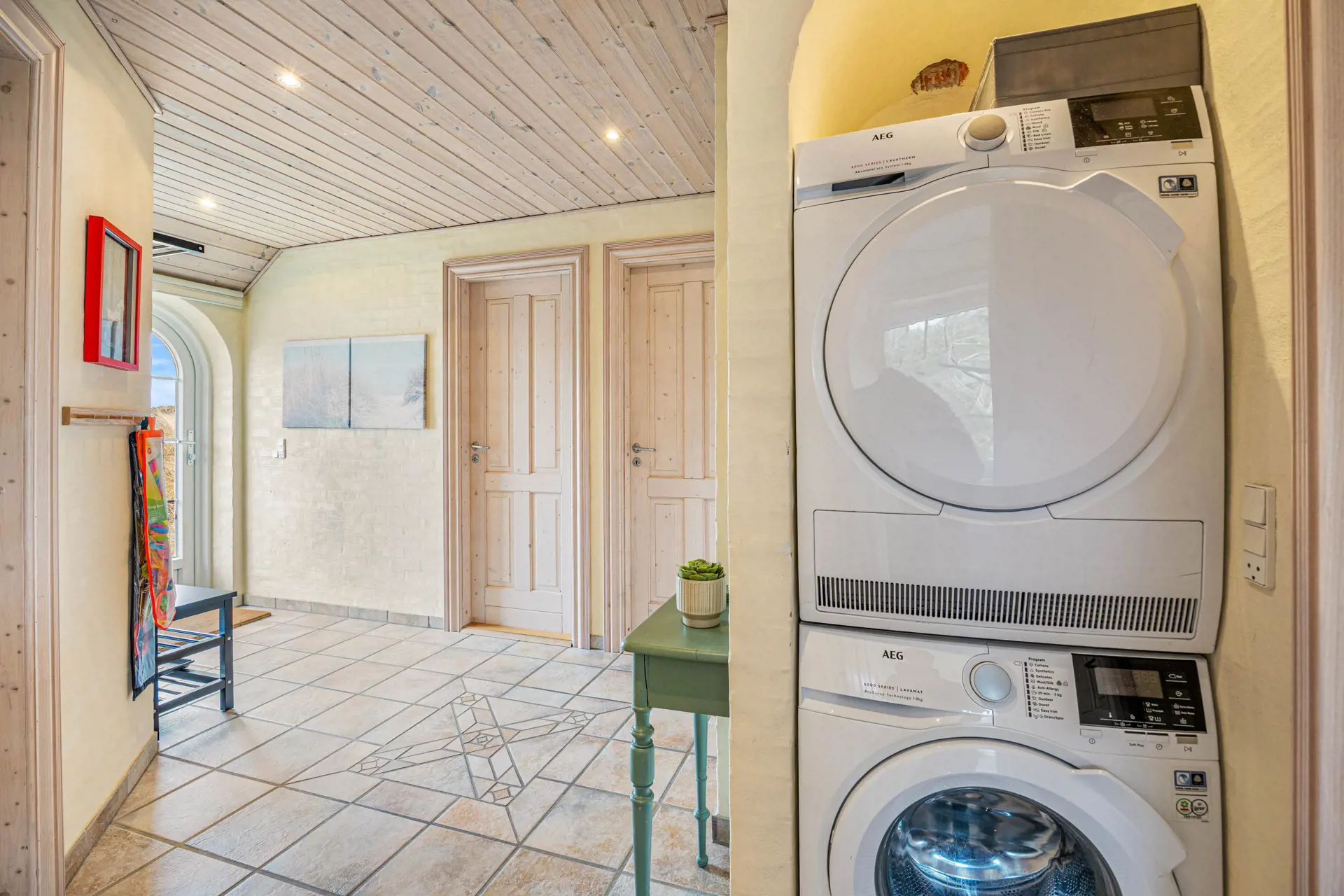 Um euren Aufenthalt so komfortabel wie möglich zu gestalten und lange Wartezeiten am Morgen zu vermeiden, ist das Haus mit 2 Badezimmern, inklusive Fußbodenheizung ausgestattet. Eines davon bietet mit der Sauna und dem Whirlpool einen Hauch von Wellness. Es gibt auch eine Waschküche mit Waschmaschine und Trockner im Ferienhaus, die euch das Packen für den Urlaub erleichtert, da ihr eure Kleidung während eures Aufenthalts problemlos waschen und trocknen können.