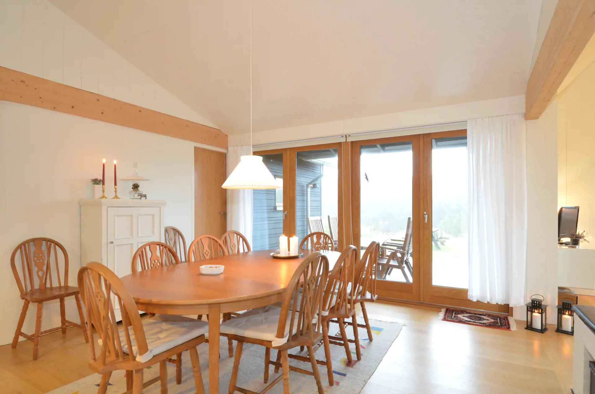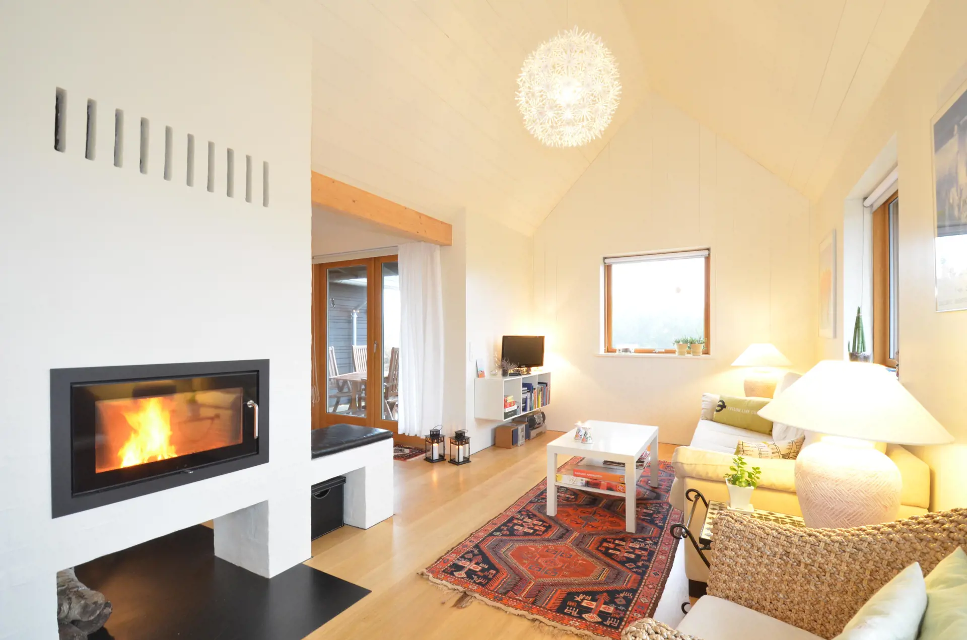 Auf 100 m2 bietet dieses Ferienhaus einen Rückzugsort für euch, eure Familie und Freunde, um dem Stress des Alltags zu entkommen. Macht es euch auf dem Sofa gemütlich, schaut gemeinsam einen Film, veranstaltet einen Spieleabend oder quatscht über vergangene Tage vor dem knisternden Kamin.