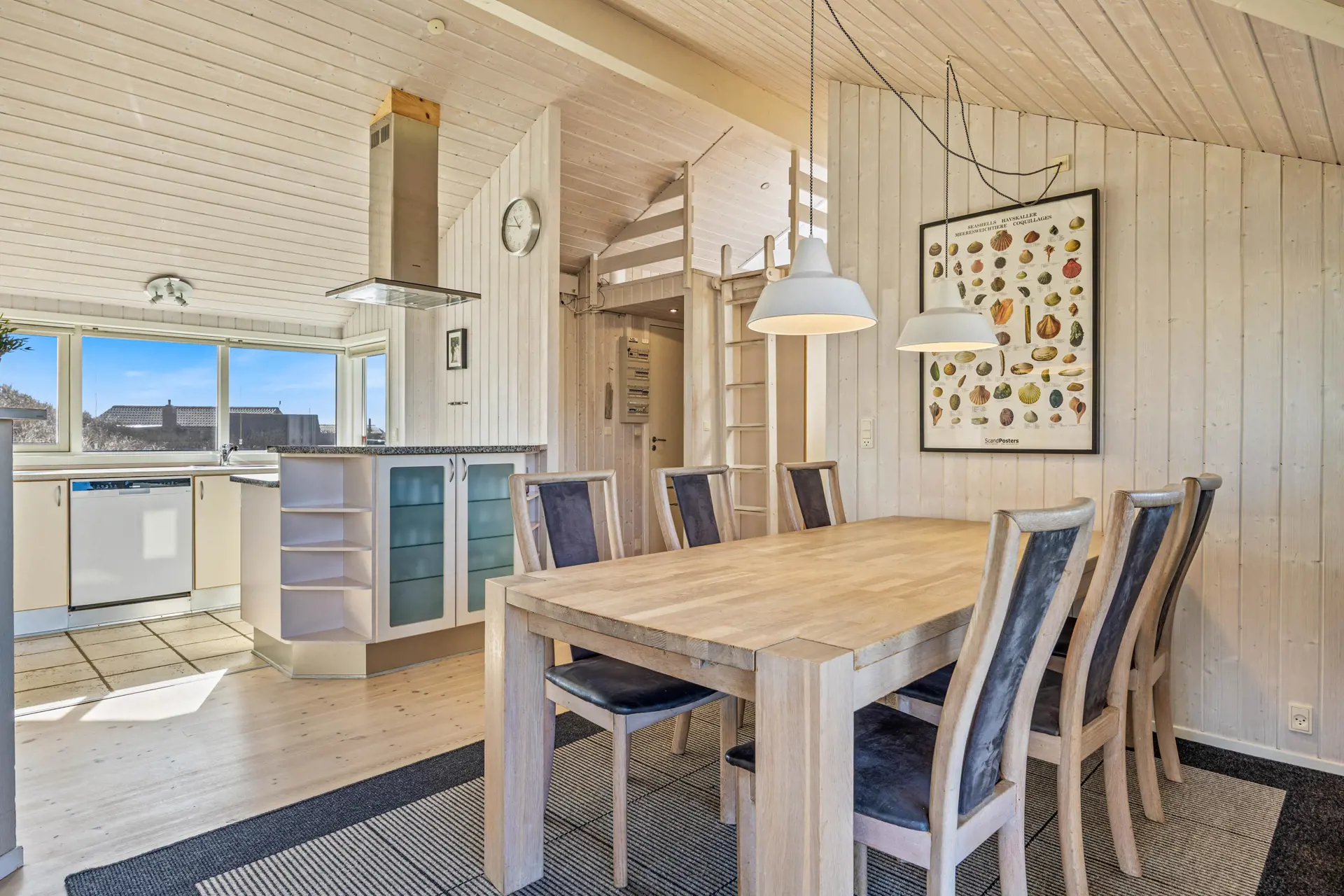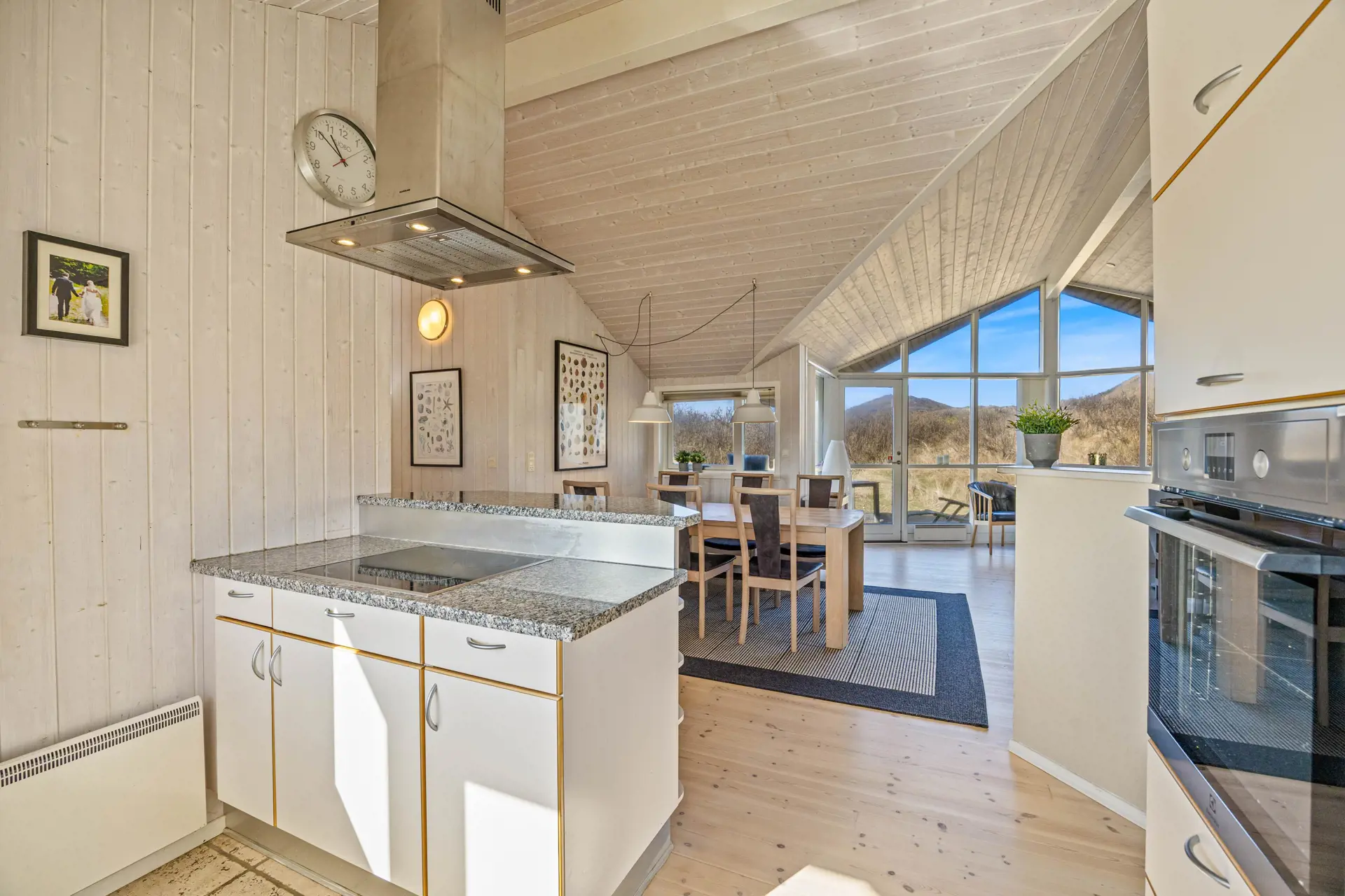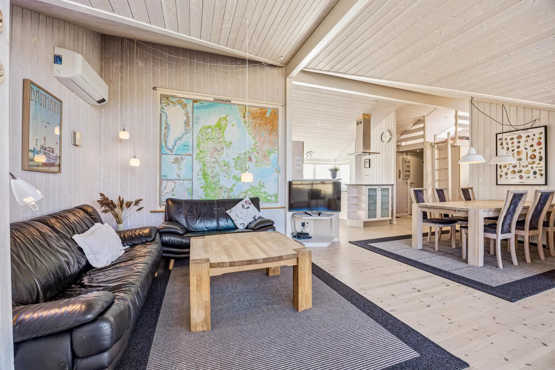 Im Mittelpunkt steht der offene Wohnbereich, der Kochen, Essen und Entspannen angenehm verbindet. In der Küche unterstützt euch eine Spülmaschine, damit nach dem Abendessen mehr Zeit für Spiele, Gespräche oder einen Film bleibt. Der Holzofen sorgt an kühleren Tagen für eine behagliche Atmosphäre, während die Wärmepumpe das Raumklima effizient und komfortabel hält. So fühlt sich der Aufenthalt zu jeder Jahreszeit stimmig an – egal, ob ihr nach einem langen Strandtag zurückkehrt oder euch einen gemütlichen Abend drinnen macht.