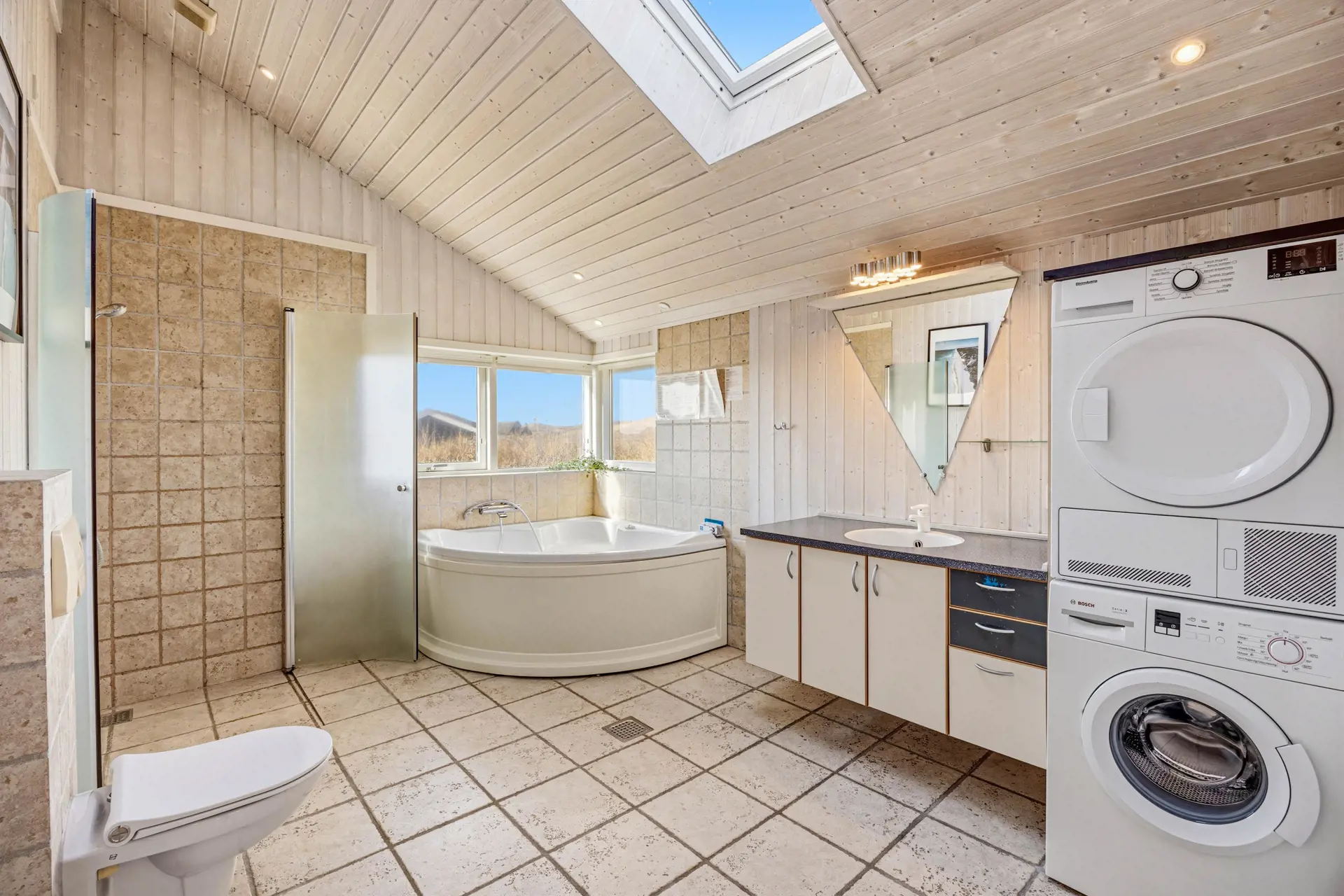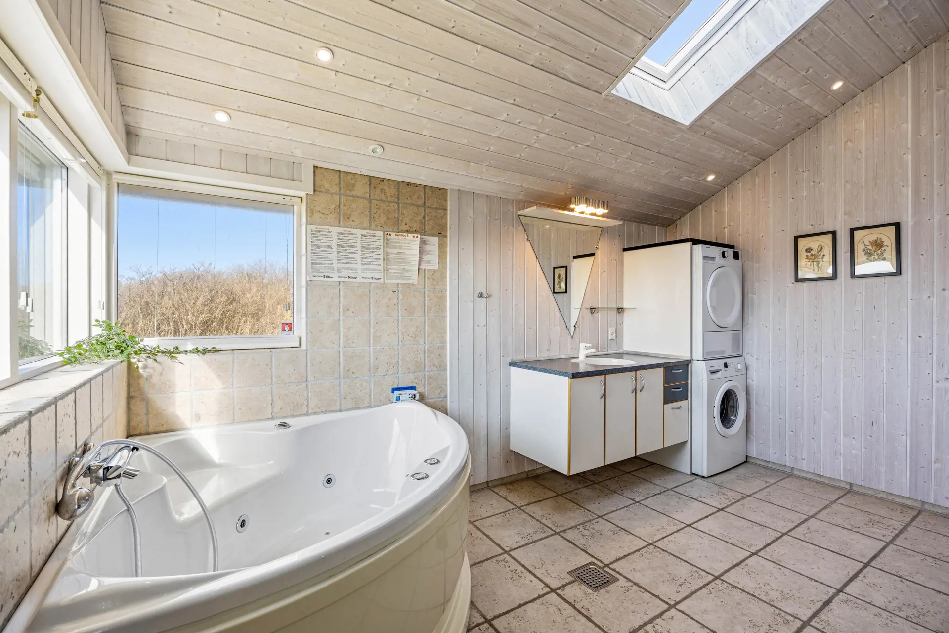Damit ihr euch gut verteilen könnt, stehen euch drei Schlafzimmer zur Verfügung. Zwei Schlafzimmer verfügen über ein Doppelbett und ein Schlafzimmer über zwei Einzelbetten. Nach windigen Strandstunden oder einem langen Spaziergang wird das Badezimmer schnell zu einer kleinen Wellnessoase. Die Fußbodenheizung sorgt für warme Füße und der Whirlpool setzt dem Tag ein kleines Highlight obendrauf – ideal, wenn ihr euch bewusst Zeit zum Abschalten nehmen wollt. Zusätzlich gibt es eine separate Gästetoilette, was den Morgenablauf deutlich entspannter macht, wenn ihr mit mehreren Personen unterwegs seid.