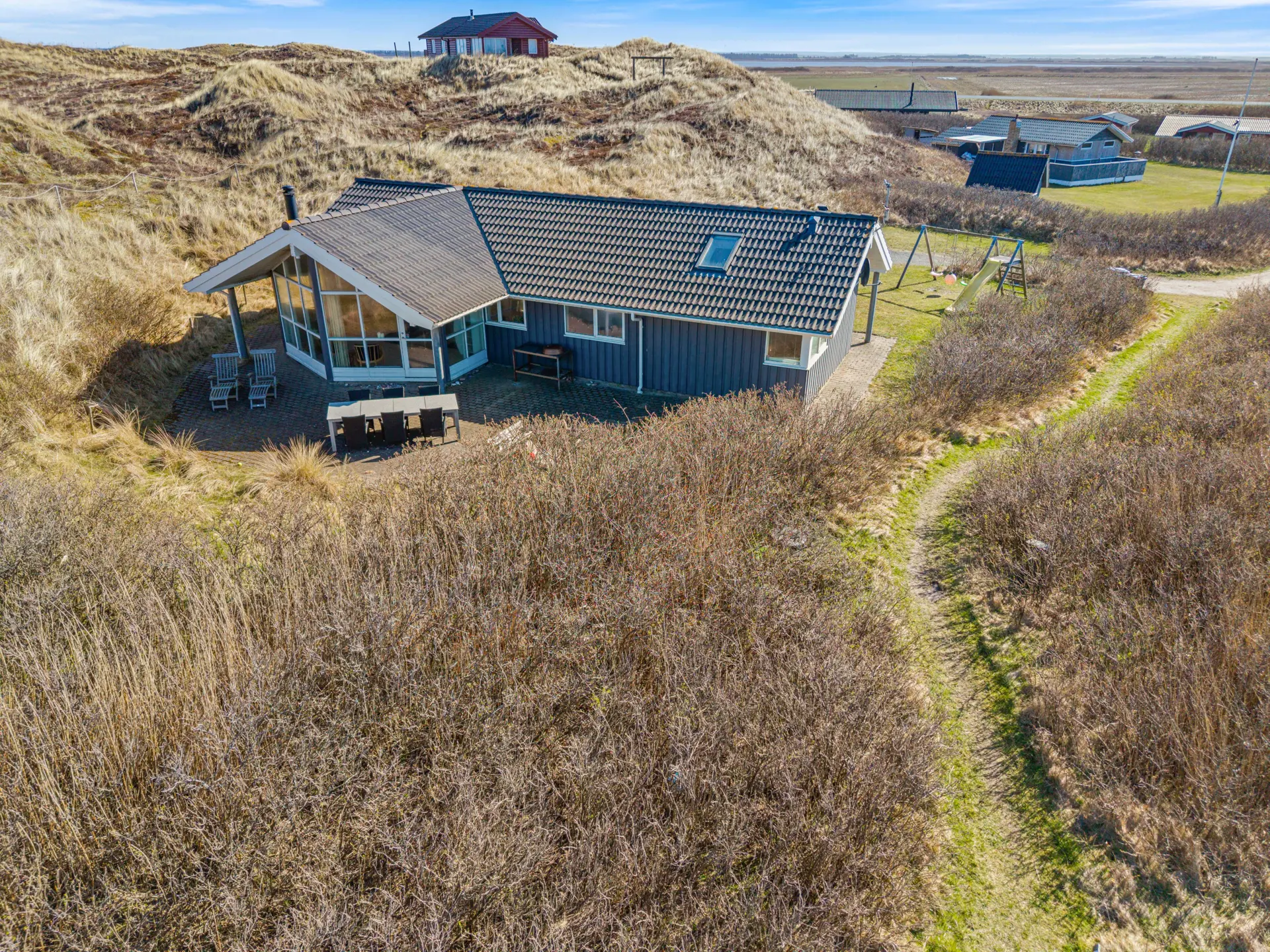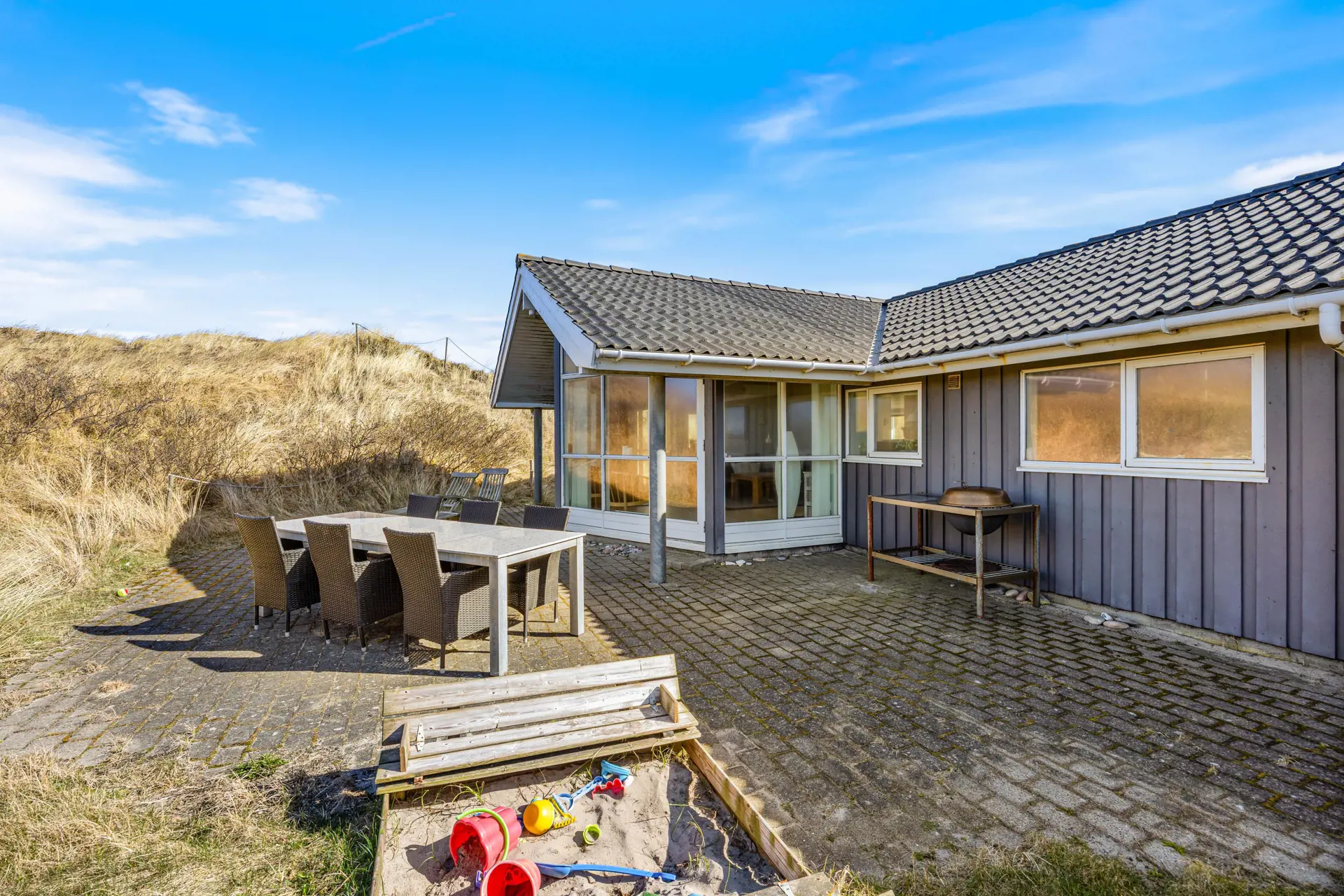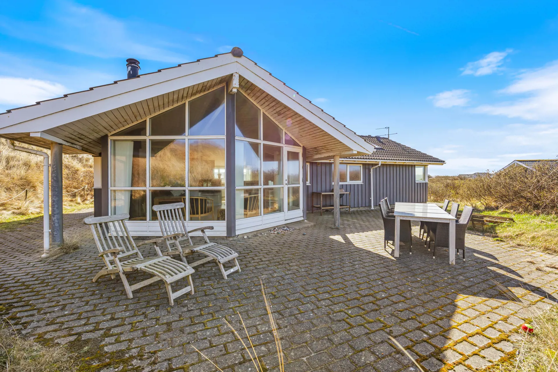 Ankommen, durchatmen und direkt in den Urlaubsmodus wechseln. Im Klægdalen 8 erwartet euch ein gepflegtes Ferienhaus in Houvig mit 98 m² Wohnfläche und Platz für bis zu 6 Personen. Das Ferienhaus liegt auf einem großzügigen 2635 m² Natur- und Dünengrundstück und bringt euch in ca. 370 m zum Strand. Und wenn euer Urlaub erst mit Vierbeinern komplett ist, passt das optimal – bis zu zwei Hunde sind erlaubt. Auch die Anreise mit eurem E-Auto ist unkompliziert, wenn ihr eure Kabel / Adapter mitbringt, findet ihr eine Lademöglichkeit am Ferienhaus.