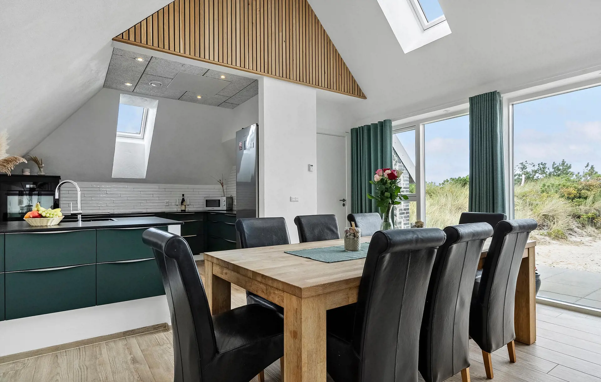 Verbringen Sie einen unvergesslichen Urlaub in diesem luxuriösen Ferienhaus mit Pool und Sauna, das zwischen den Dünen nah am Strand liegt.