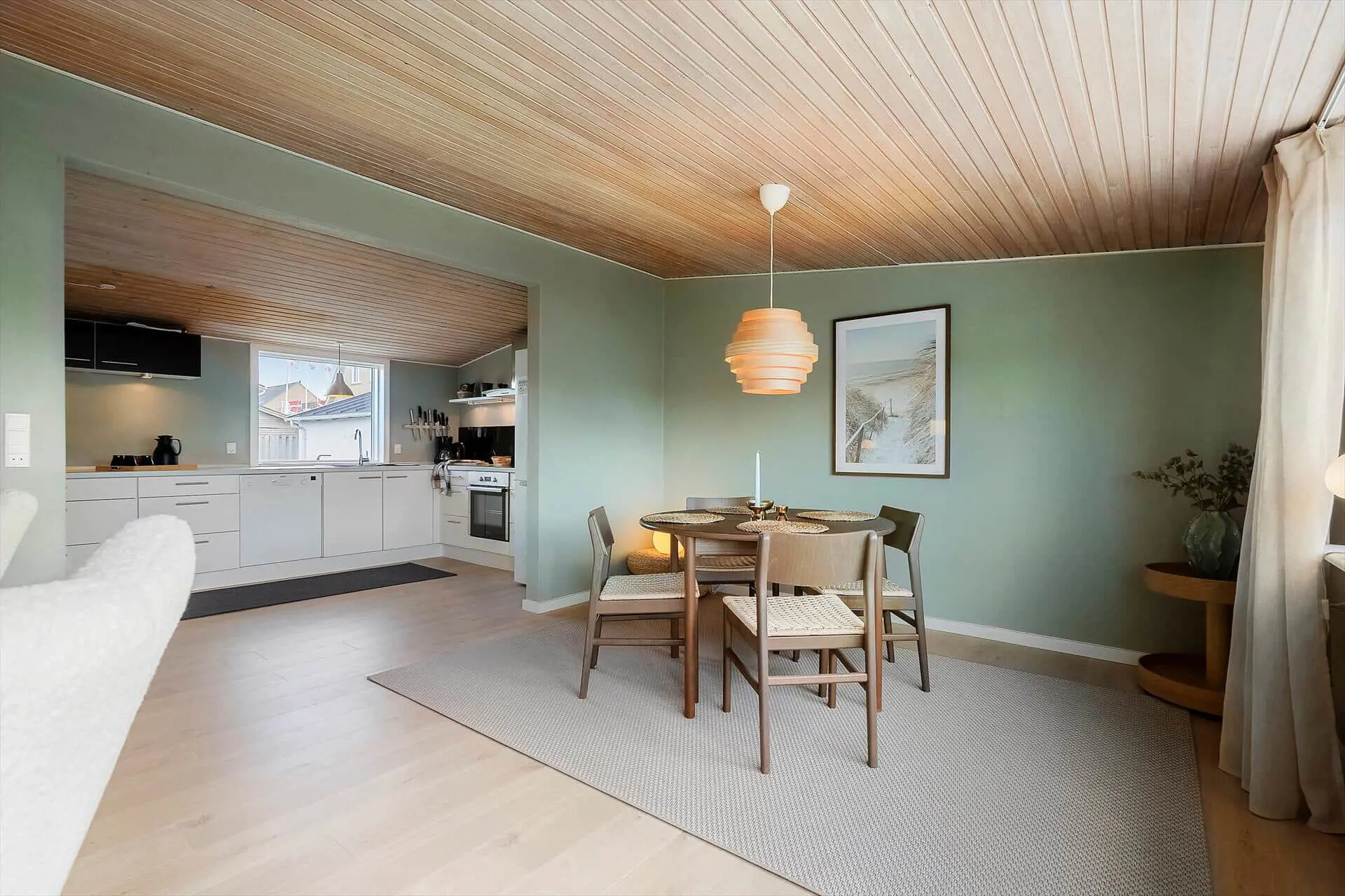 Drinnen empfängt dich eine helle und freundliche Einrichtung, in der Küche und Wohnzimmer zu einer gemütlichen Einheit verschmelzen. Im Wohnzimmer kannst du nach einem aktiven Tag entspannen und die Erlebnisse vom Strand oder Hafen Revue passieren lassen. Die moderne Küche macht das gemeinsame Kochen leicht, und die beiden Schlafzimmer bieten eine erholsame Basis für eine gute Nachtruhe. Wir wissen, dass viele unserer Gäste es genießen, hier mitten in der Stadt eine sichere Rückzugsoase zu haben – und gleichzeitig nur wenige Schritte von allem entfernt zu sein, was Hvide Sande zu bieten hat.