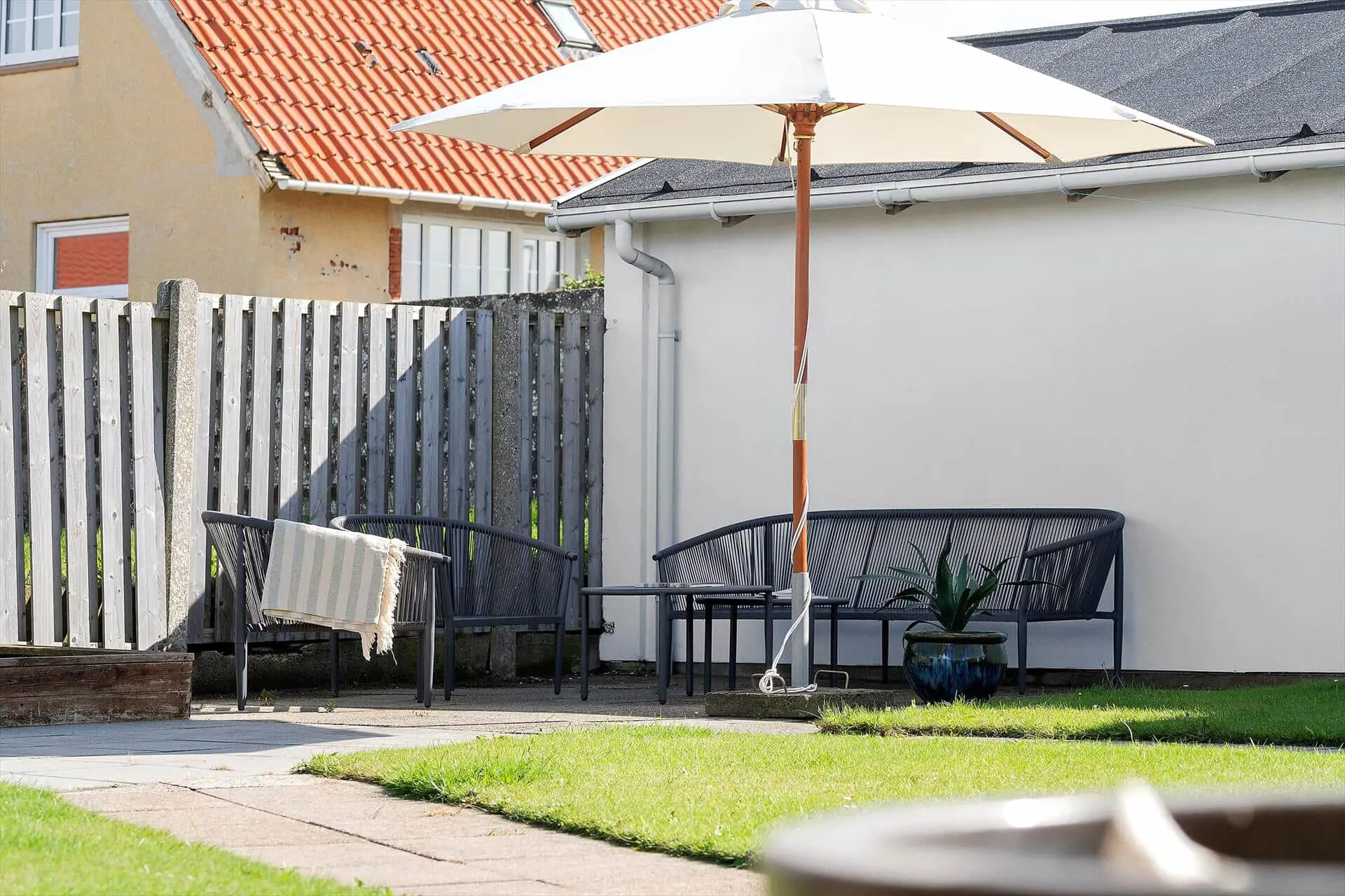 Der geschlossene Garten ist ein großes Plus für dich, wenn du mit Kindern oder Hunden reist, denn hier gibt es Platz zum Spielen und Entspannen in ruhiger Umgebung. Der Garten wirkt wie eine grüne Oase mitten in der Stadt, in der du den Tag mit einer Tasse Kaffee beginnen oder mit einem gemütlichen Grillabend ausklingen lassen kannst. Hier kannst du die Sonne genießen, ein Buch lesen oder einfach spüren, wie sich die Ferienruhe einstellt, während das Stadtleben nur wenige Meter entfernt pulsiert. Wir bei Feriepartner Hvide Sande wissen, dass unsere Gäste gerade diese Kombination aus städtischem Leben und privater Ruhe lieben. Wenn der Abend hereinbricht, kannst du Laternen auf der Terrasse anzünden, den fernen Geräuschen vom Hafen lauschen und erleben, wie langsam die Ruhe einkehrt – eine ganz besondere Stimmung, die dieses Stadthaus für uns ausmacht.