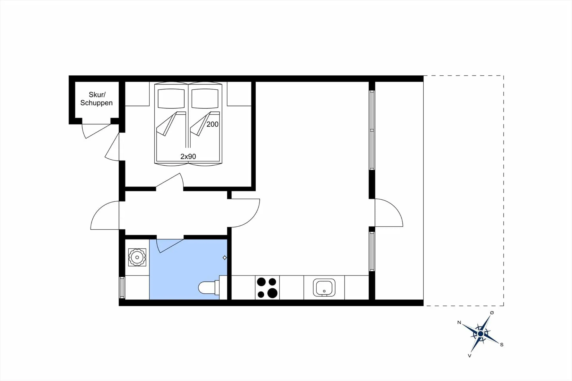 - Anzahl Doppelbetten: 1 2x90x200