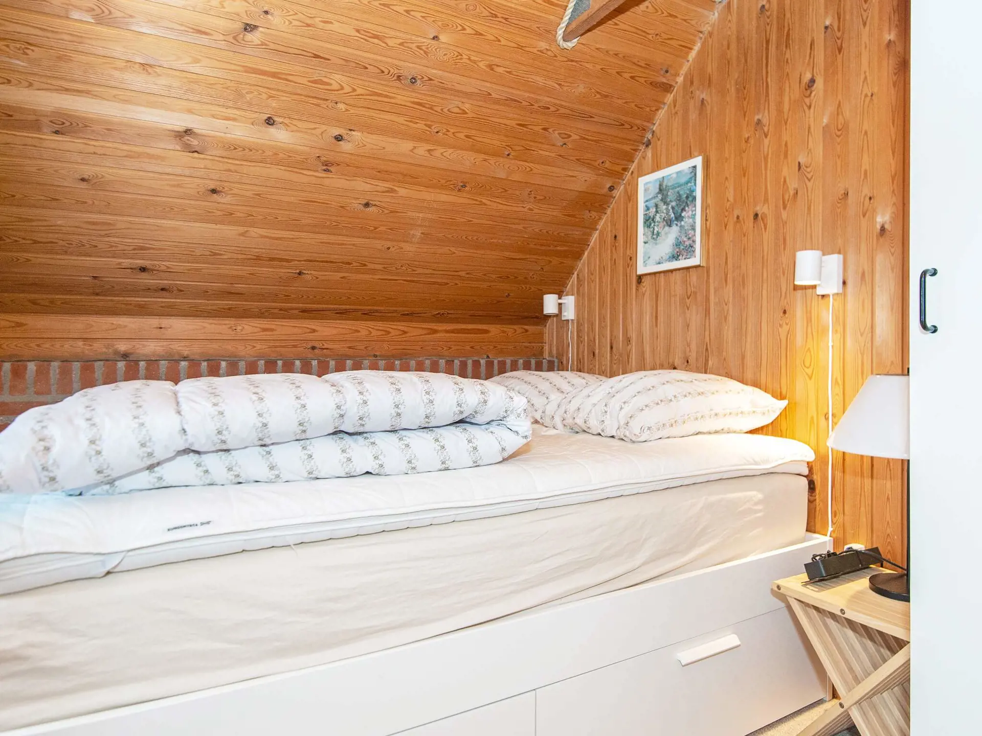 Neben dem Badezimmer mit Sauna und angenehmer Fußbodenheizung gibt es zwei Schlafzimmer im Haus: eines mit Doppelbett, das zweite mit zwei Einzelbetten. Darüber hinaus stehen oben auf dem Hems unter der Dachschräge zwei weitere Schlafplätze bereit.