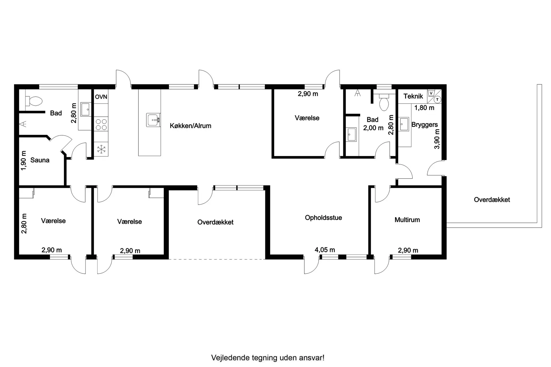 Das Ferienhaus verfügt über drei Schlafzimmer mit Doppelbetten sowie zwei Badezimmer mit Dusche – eines davon mit Zugang zu einer schönen Sauna. Im Außenbereich können Sie Ihren Urlaub auf der großen, umlaufenden Terrasse genießen. Ein Teil der Terrasse ist überdacht, sodass Sie auch bei wechselhaftem Wetter im Freien essen können.