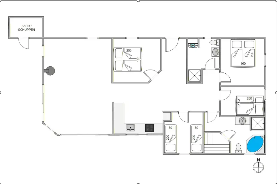 Das Ferienhaus ist mit Fokus auf Funktionalität und Komfort eingerichtet. Hier findet ihr eine gut ausgestattete Küche, schöne Schlafzimmer und die notwendigen Einrichtungen für kurze und längere Aufenthalte. So könnt ihr euch ganz einfach entspannen und euren Urlaub praktisch ohne Sorgen genießen.