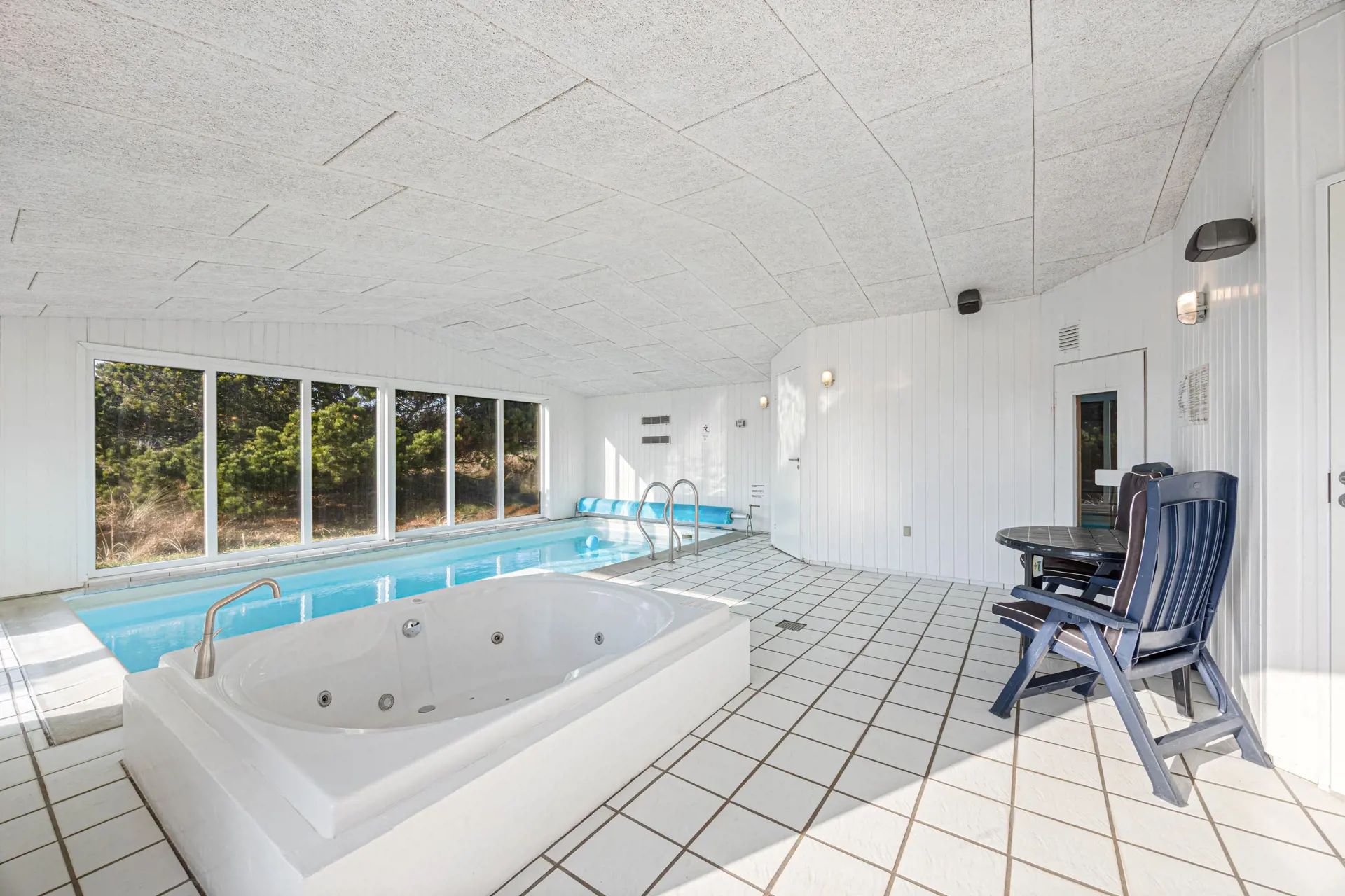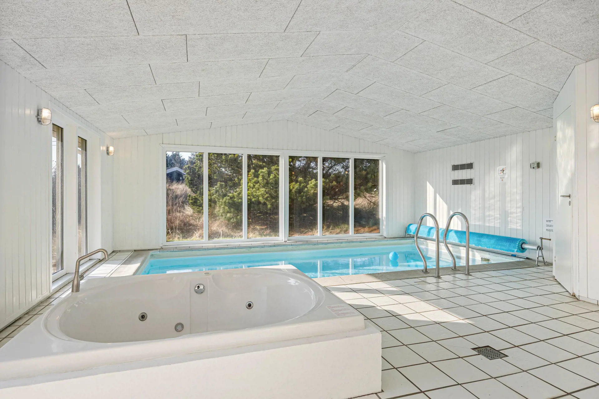 Ein besonderes Highlight des Ferienhauses ist der Poolbereich mit Innenpool und Schwimmtrainer sowie Sauna und Whirlpool.